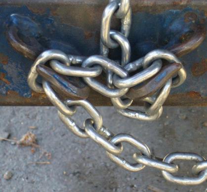 the grab hooks on the front side of the wheel-lift crossbar. While various methods are used in the field, this picture shows the correct way the chain attaches to the grab hooks.
