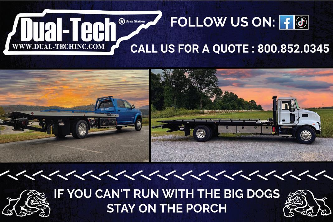 Founded by Don and JoAnn Roberts in 1989, Dual Tech, Inc. is headquartered in East Tennessee, and is one of the oldest family-owned rollback manufacturers in the United States. Dual-Tech’s rollback unit is one of the few that comes with a standard 40-gallon fuel capacity, and an independent wheel lift operating without a loaded bed. The heart of the Dual-Tech system is a patented “Quad Rail” subframe, engineered to prevent bending, and has been utilized for almost 30 years with no reported failures. All Ford rollbacks equipped with Dual Tech beds come with straps and chains, and options include a wireless winch remote, custom bed colors, bed texturing and adjustable car dolly chains.