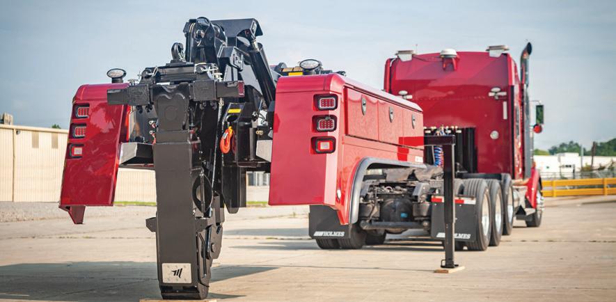 The Holmes DTU from Miller has been redesigned to decrease rear overhang, increase front axle weight, and repositioned lift cylinders, all for improved towing operations. The unit comes standard with a 20,000-lb planetary winch, 175 feet of 9/16” wire rope, and front legs that allow the DTU to be easily removed in a matter of minutes.