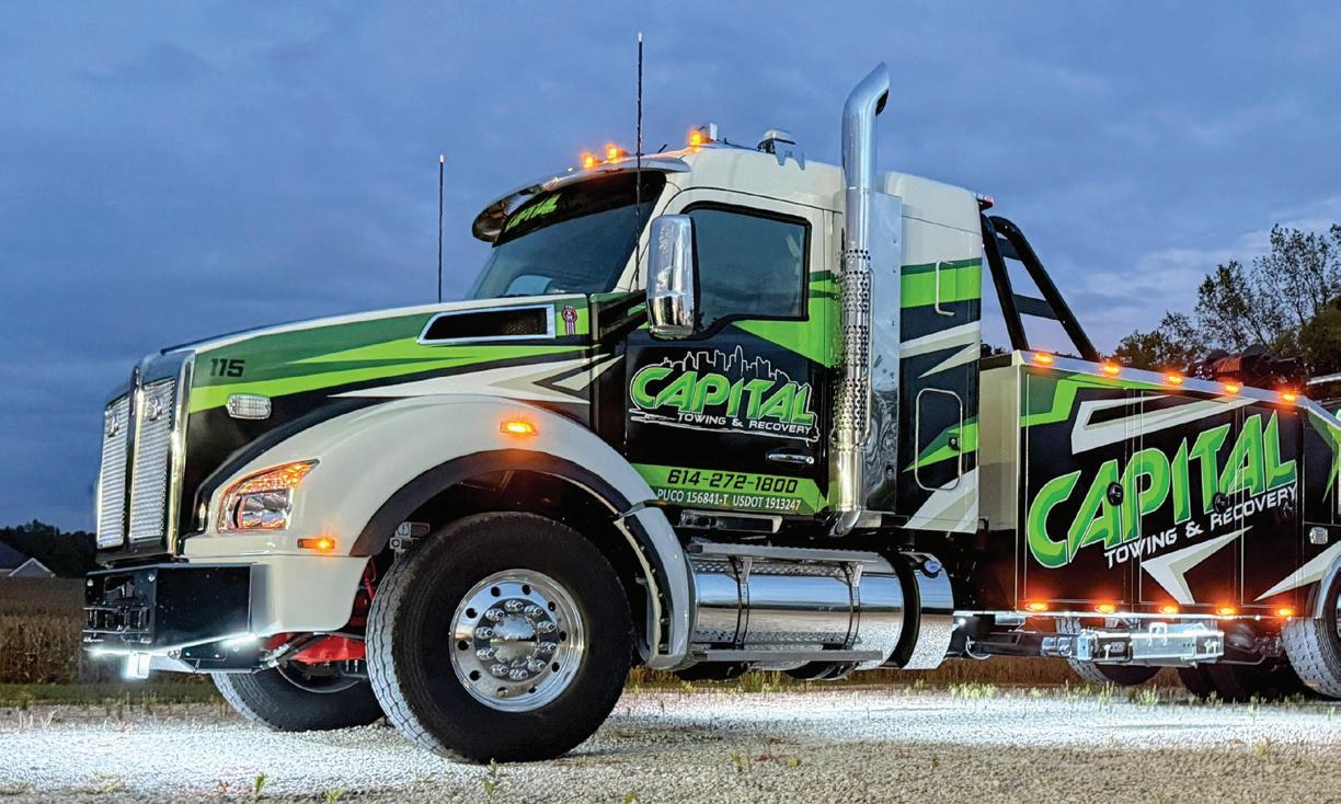 Getting noticed in the competitive towing business takes some innovative thinking and bold branding. To that end, Capital Towing & Recovery created vivid new graphics. The Columbus, Ohio tow company recently completed a full fleet rewrap that highlights its name in striking green and black lettering, signaling a confident, modernized identity.