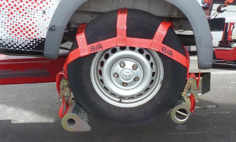 the roadway, the tires in the wheellift grid will settle into the wheellift grid and the wheel securement strap may loosen if it is not tight enough to start with. This does not apply to some basket wheel securement straps, so do not use a ratchet to tighten the strap. They use a chain at one end of the straps to secure it hand tight.