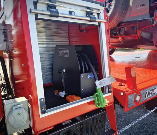 NRC Industries is shifting gears toward a cleaner, more powerful future. In conjunction with the company’s 50th anniversary celebrations, NRC unveiled its very first electricpowered carrier, currently undergoing road testing under the name E-20TB. This transporter breakthrough reflects the company’s commitment to offering highperformance solutions that meet both tomorrow’s environmental challenges and today’s regulatory standards. This firstof-its-kind, electric-powered carrier was installed on a Mack MD Electric truck for the fleet of Remorquage Boissonneault based in Granby, QC, Canada. The system—featuring a power pack and an ePTO (electric Power Take-Off)—is fully concealed and integrated into the vehicle. No special adjustments are required from the operator. Everything has been designed to ensure a simple, efficient user experience comparable to that of a conventional NRC model. Some key features include a recharge