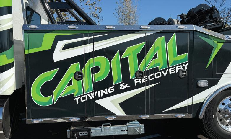 “We wanted our name to stand out more,” explains owner Brandon Harris, who founded Capital Towing in 2007 after serving as a police officer. “The previous scheme looked great, but our company name kind of got lost in the graphics. We felt we were able to accomplish that with the new redesign.”