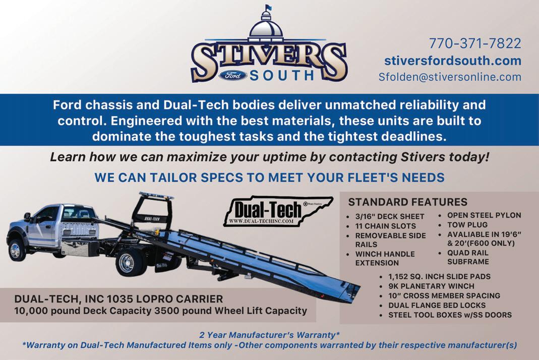 Stivers Ford South has partnered with Dual Tech, Inc. as the Ford distributor of the Dual Tech 1035 low-profile carrier built on Ford F-550 and F-600 chassis. Stivers Ford South is one of three Stivers Ford dealerships in the Atlanta, Georgia area, and one of eight dealerships in four states.