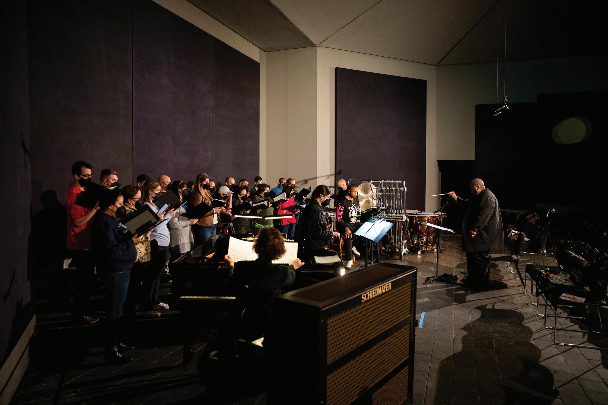 COVID struck, and all came to a standstill. A huge fermata hung over the process. It wasn’t until October 2021 that the composer made it to Houston. The director Peter Sellars flew in from LA—the Park Avenue Armory had joined the commission, and a staged version was being planned for New York, to follow the premiere.