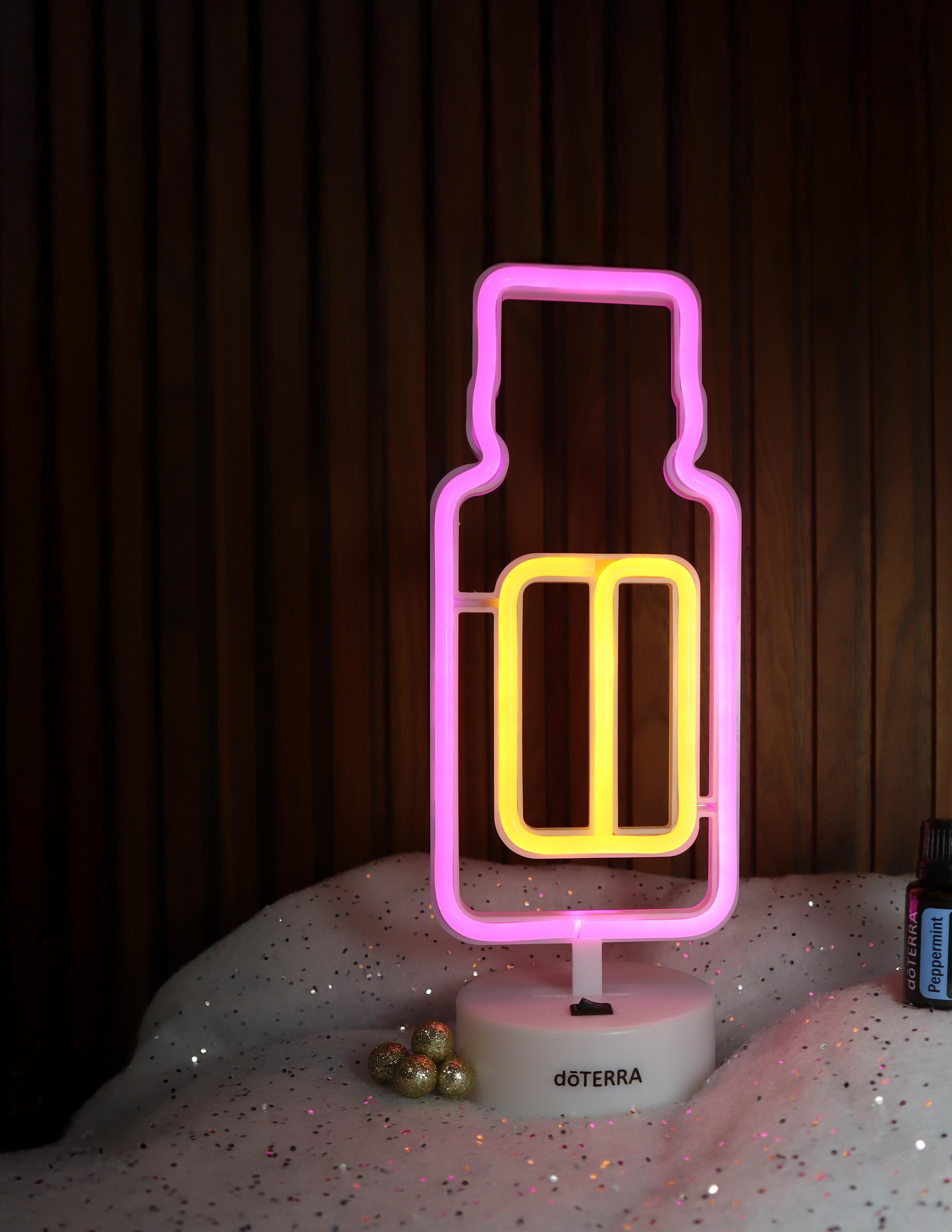 Dale un toque glam a tu escritorio con esta lámpara en forma de frasco de aceite esencial. Su divertido diseño inspirado en dōTERRA ilumina tu espacio y te sacará una sonrisa cada vez que la veas brillar.