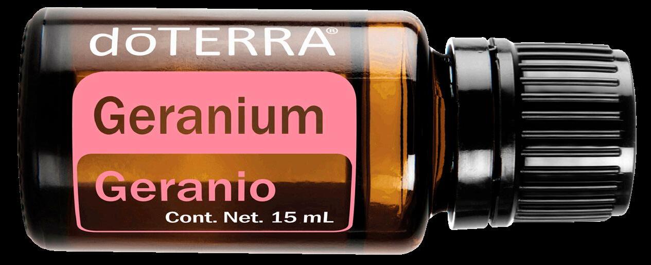 Geranio. Floral y armonizante. Favorece una sensación de balance y autoestima, acompañando rutinas de cuidado personal.
