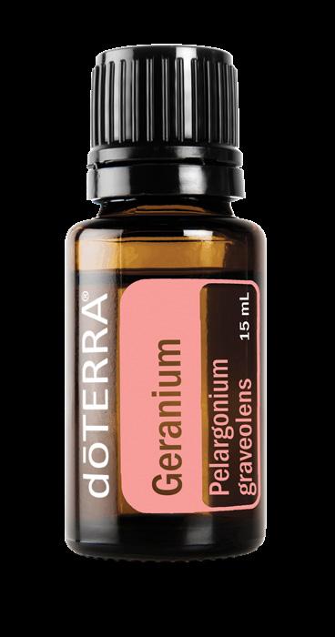 Geranium (Citronellol, Geraniol): balances sebum, encourages skin clarity.