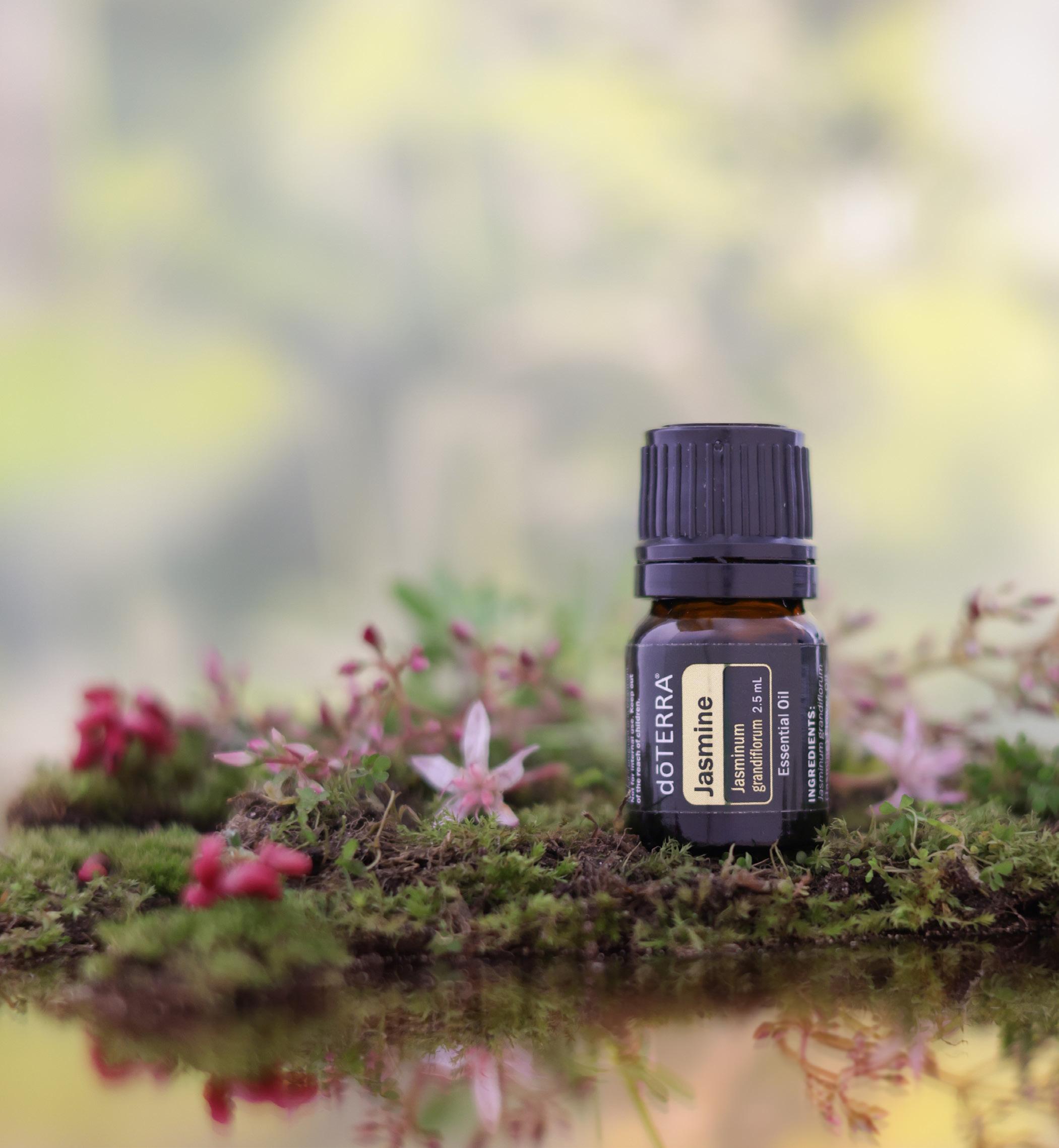 Jasmine (Benzyl acetate, Farnesene): enhances skin suppleness, romantic floral aroma.