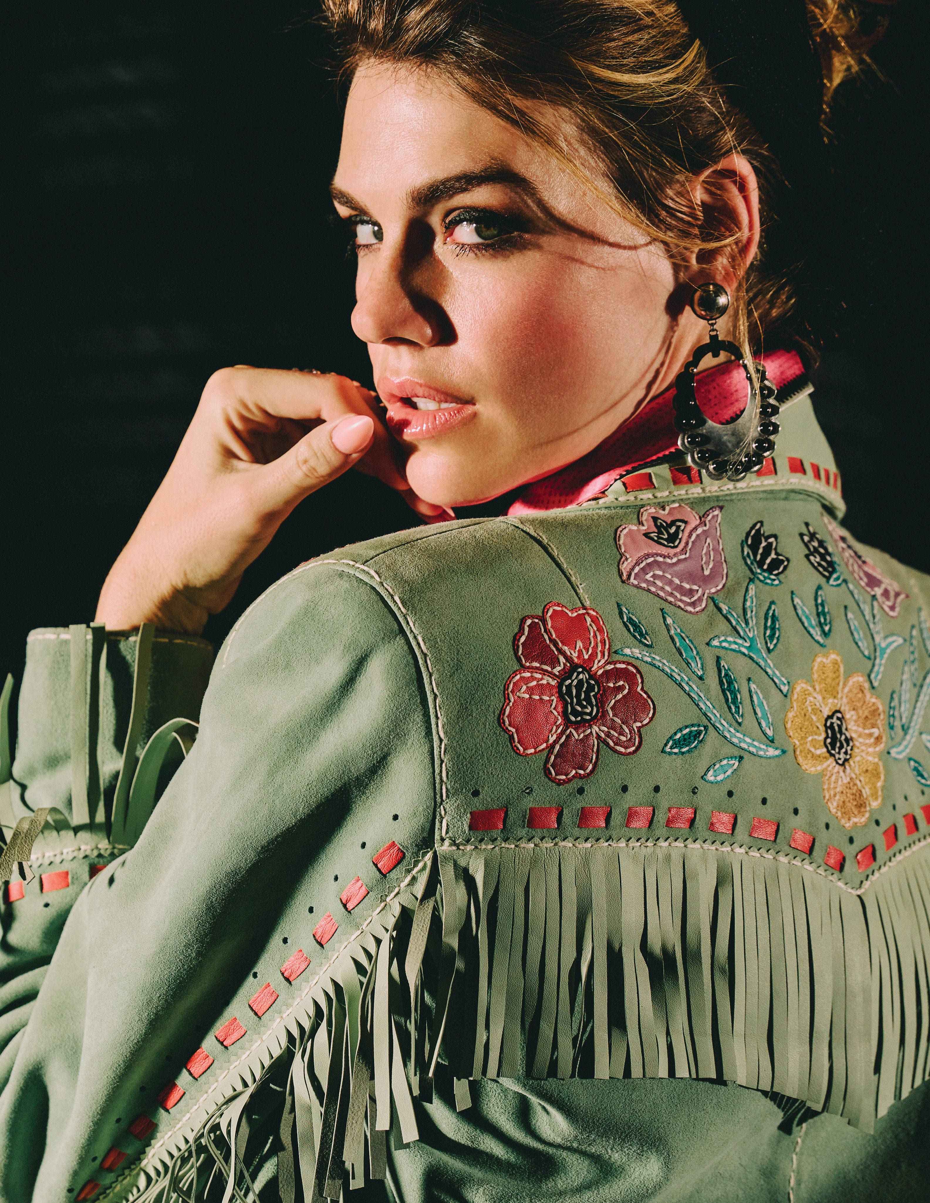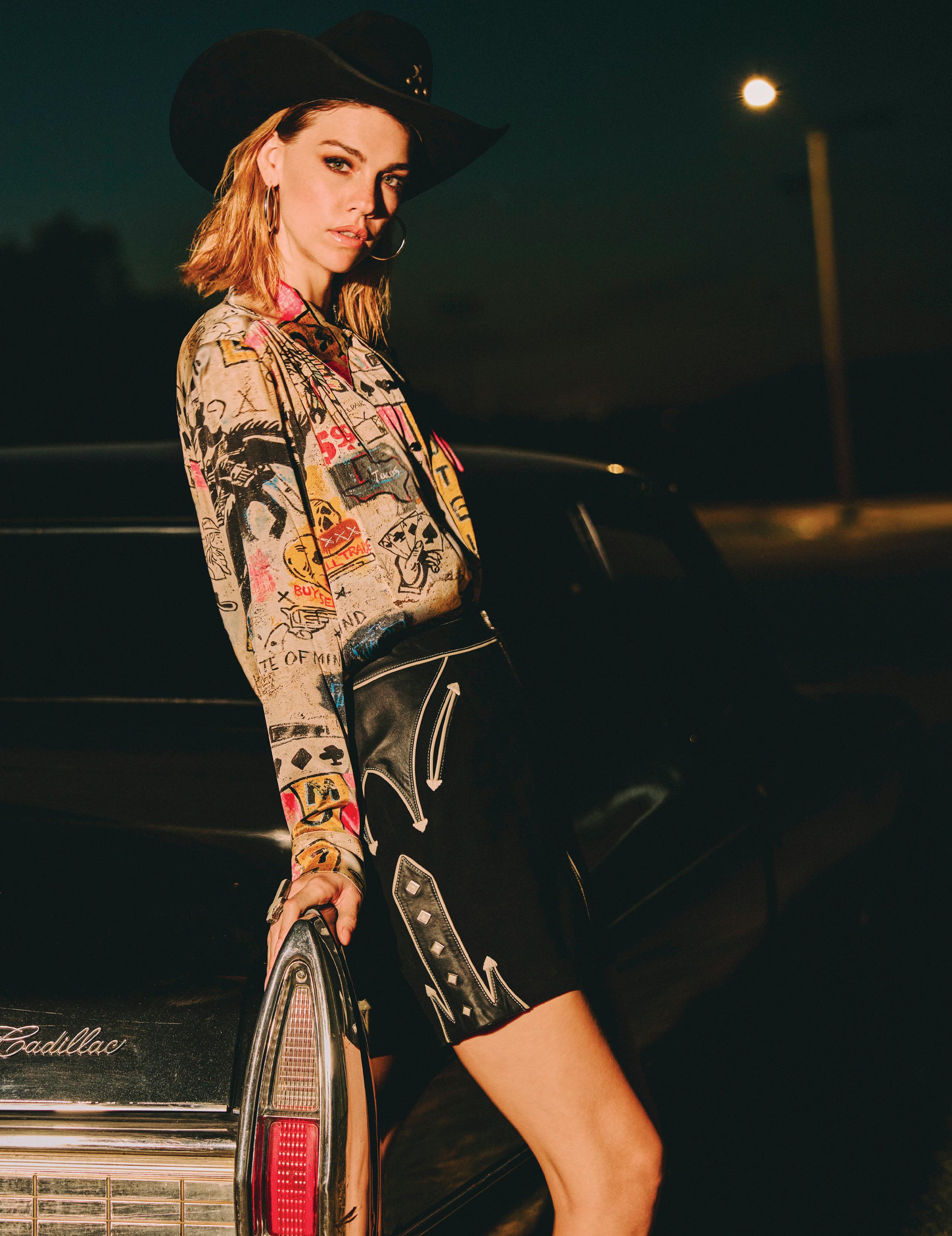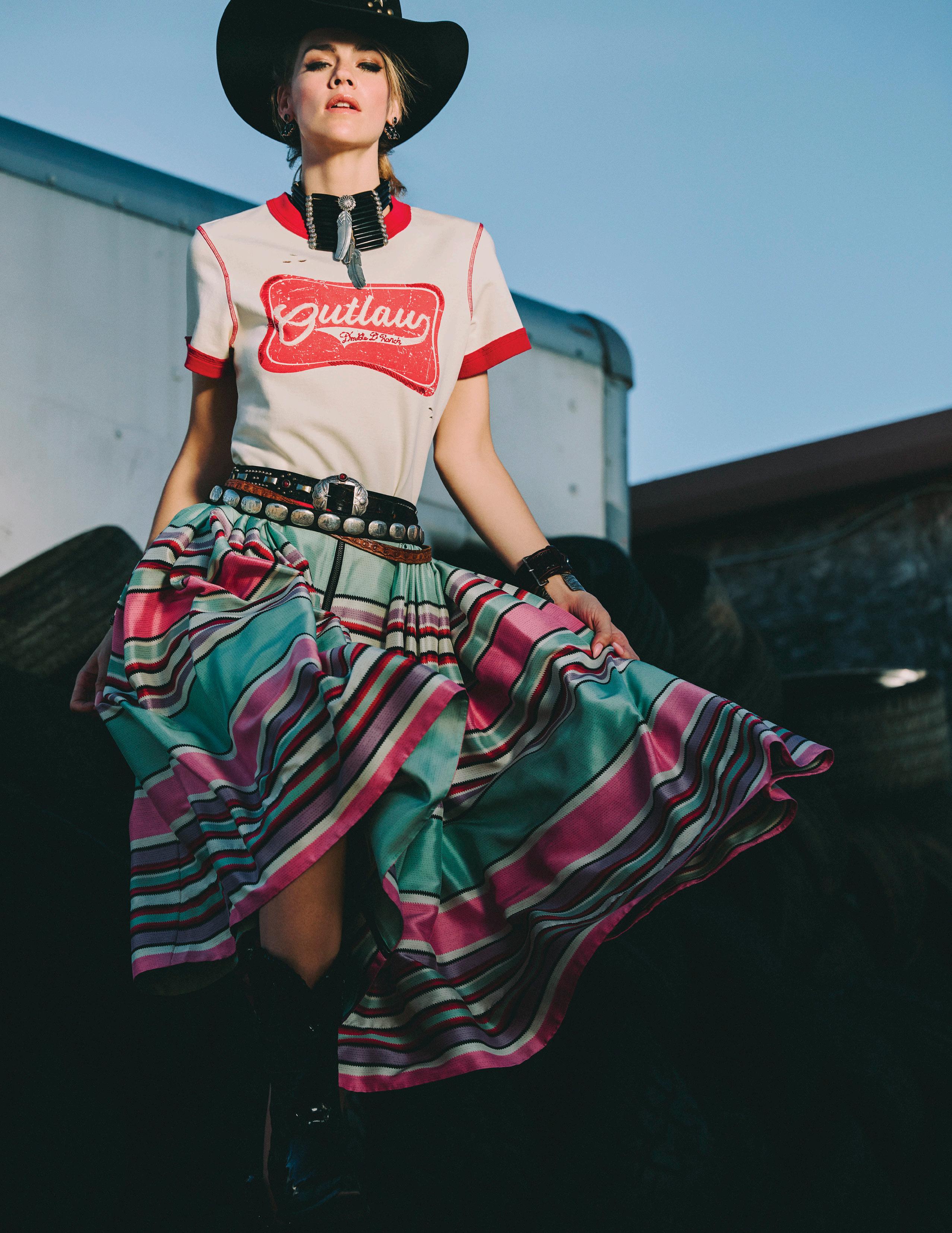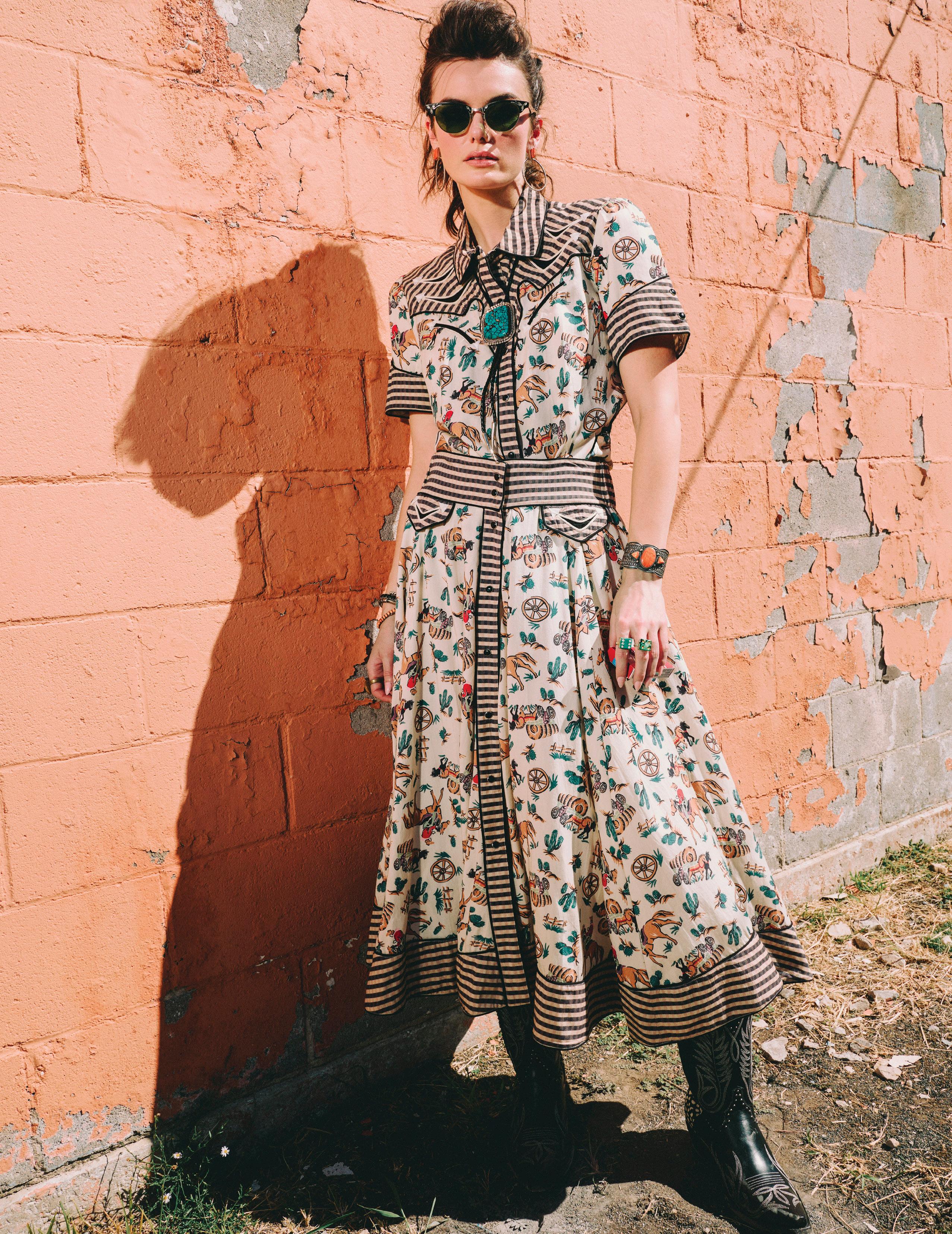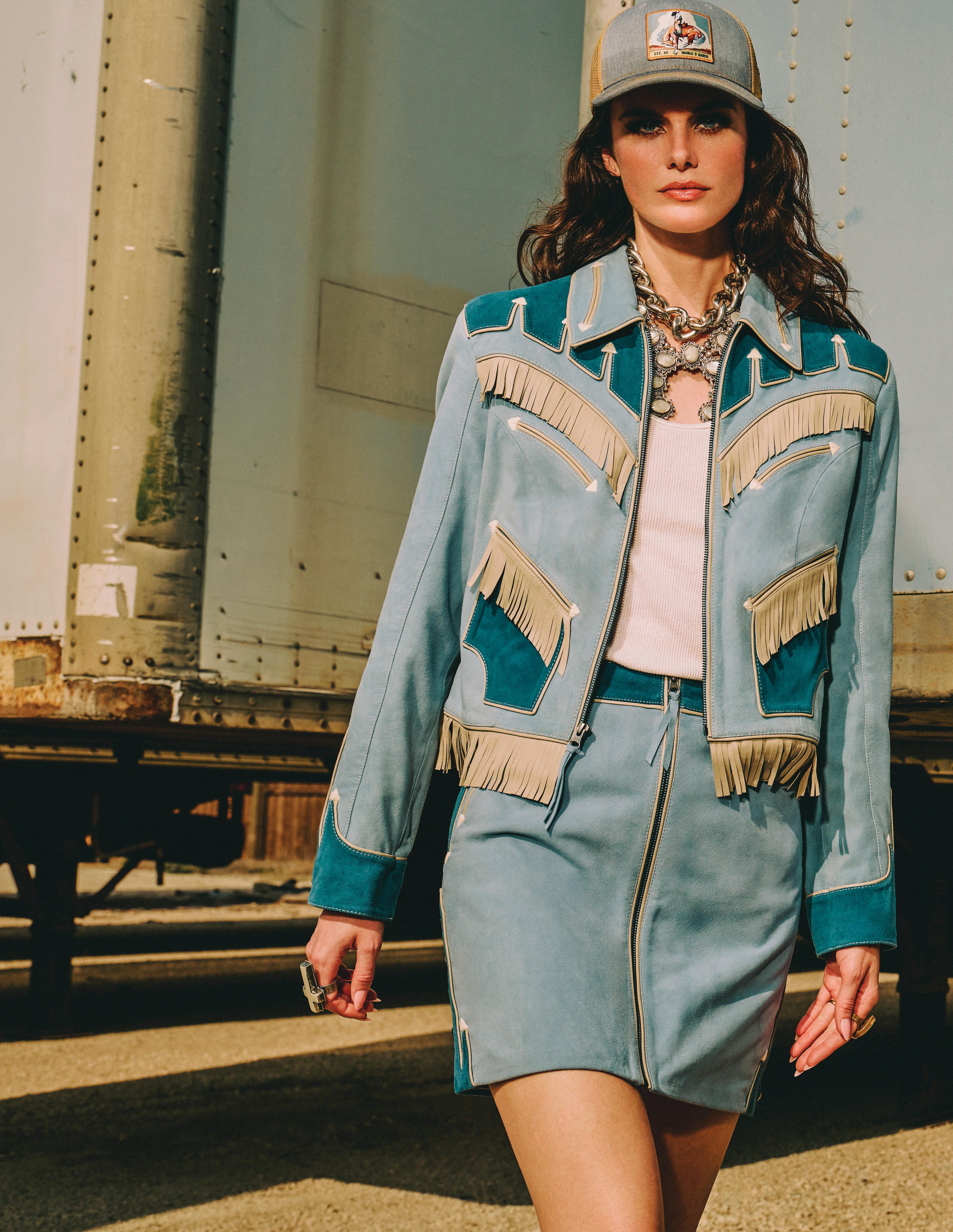 COWBOY GRAFFITI JACKET, HOWDY DOTTY SHORT, CITY SLICKER HAT, LONG TALL SALLY BOOT, OSCAR BETZ FOR DOUBLE D RANCH, DOUBLE D RANCH JEWELRY, VINTAGE DOUBLE