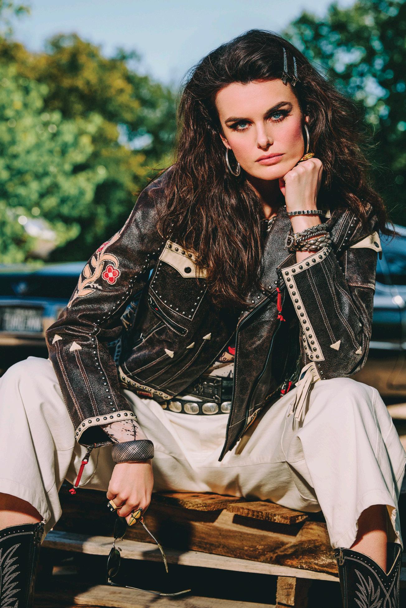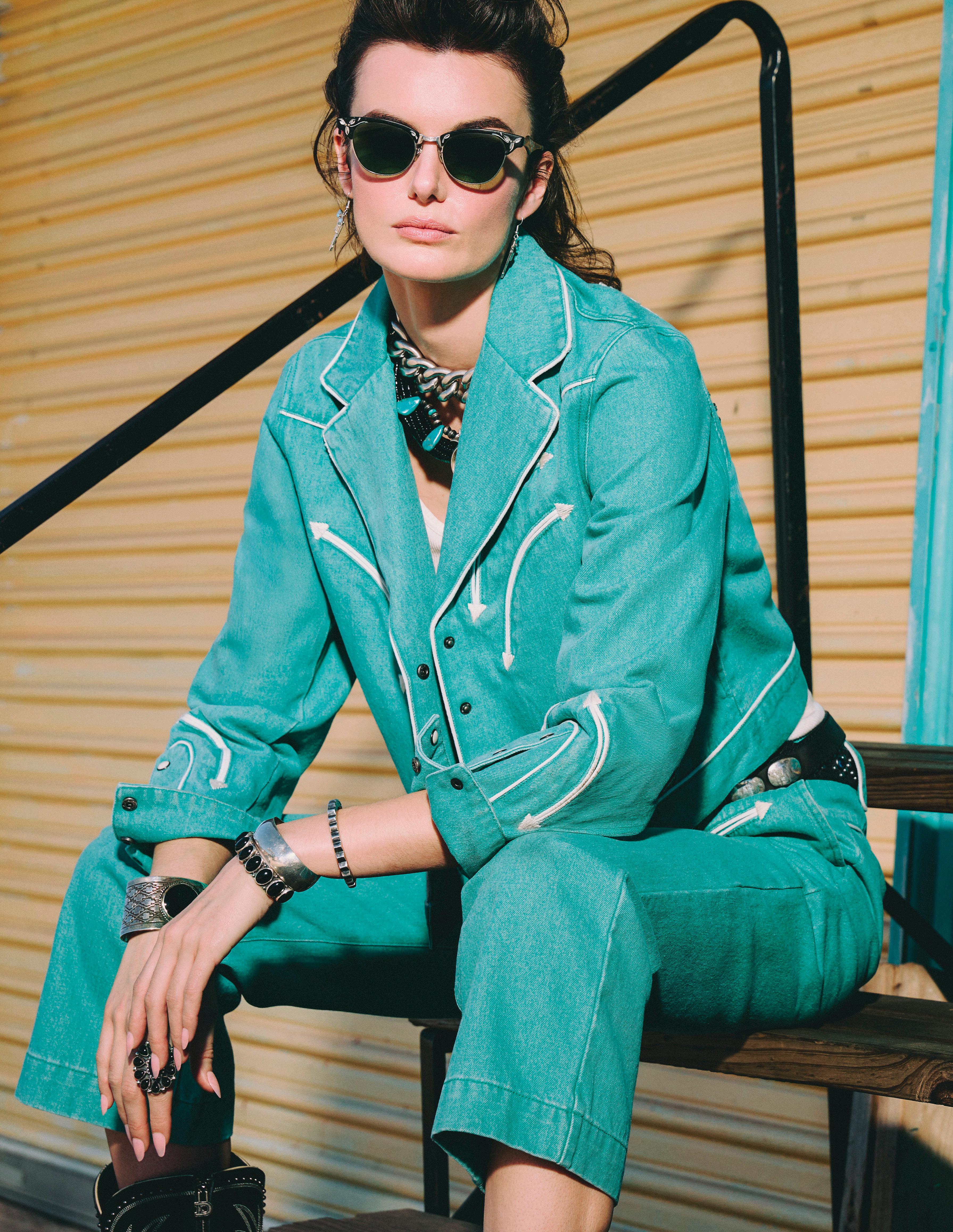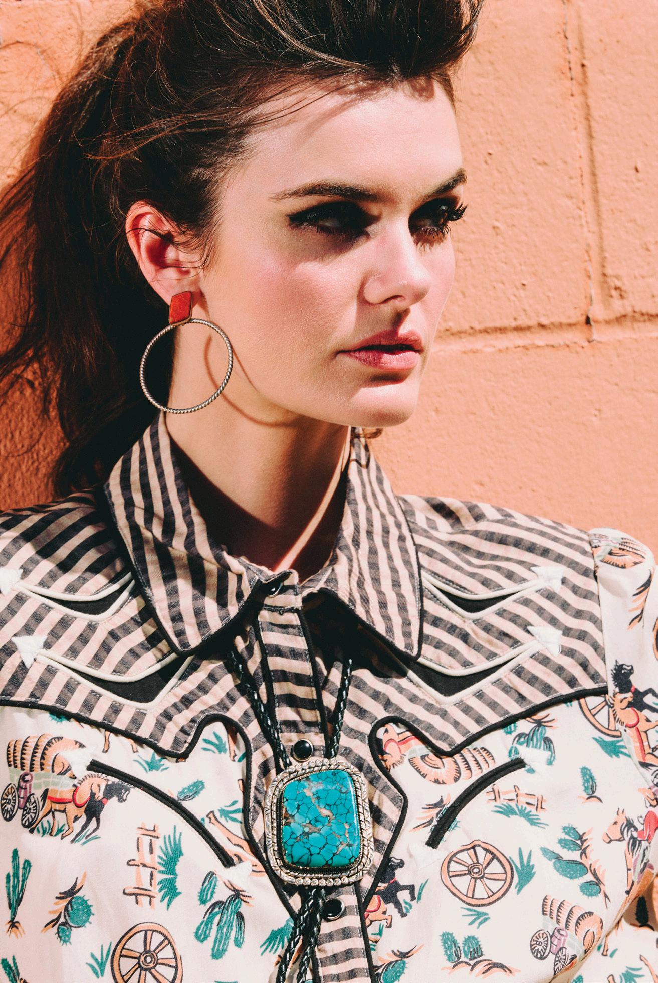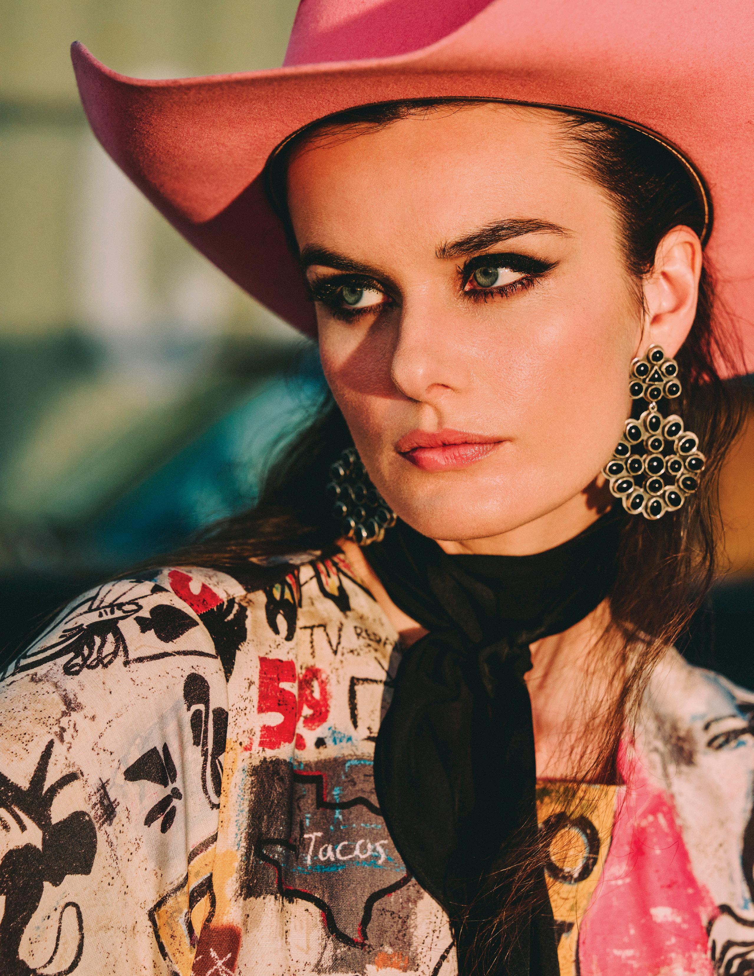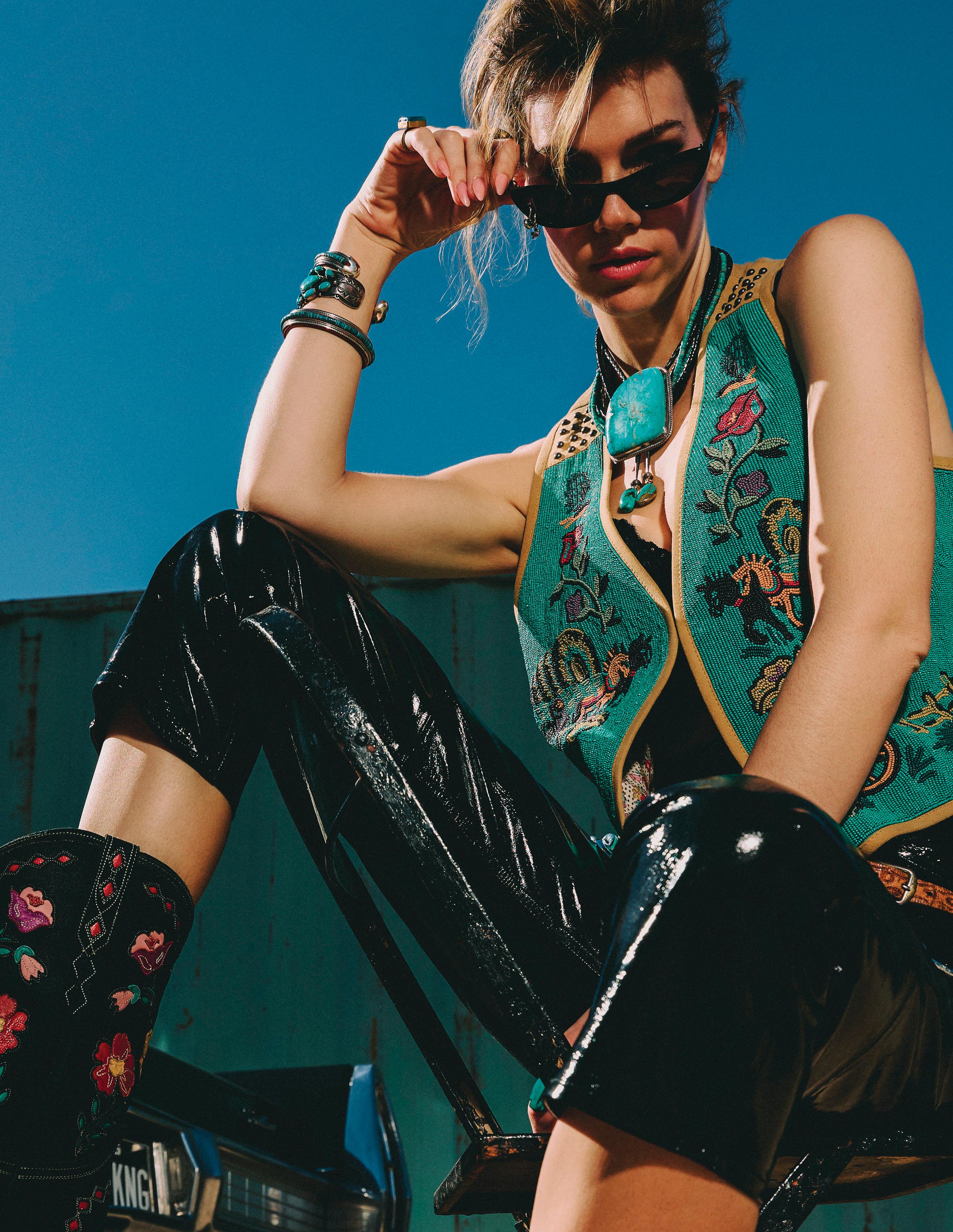 COWBOY GRAFFITI JACKET, HOWDY DOTTY SHORT, CITY SLICKER HAT, LONG TALL SALLY BOOT, OSCAR BETZ FOR DOUBLE D RANCH, DOUBLE D RANCH JEWELRY, VINTAGE DOUBLE