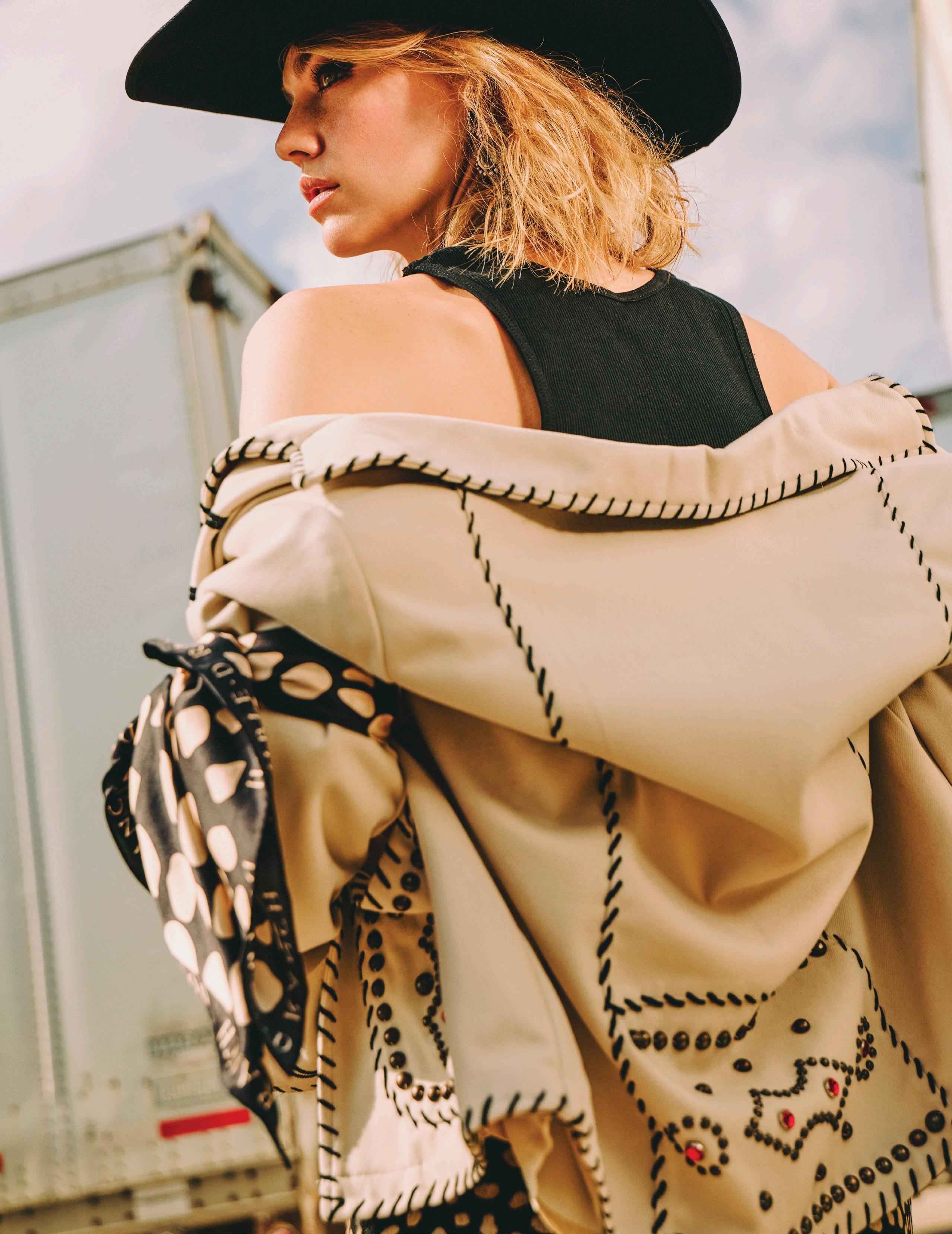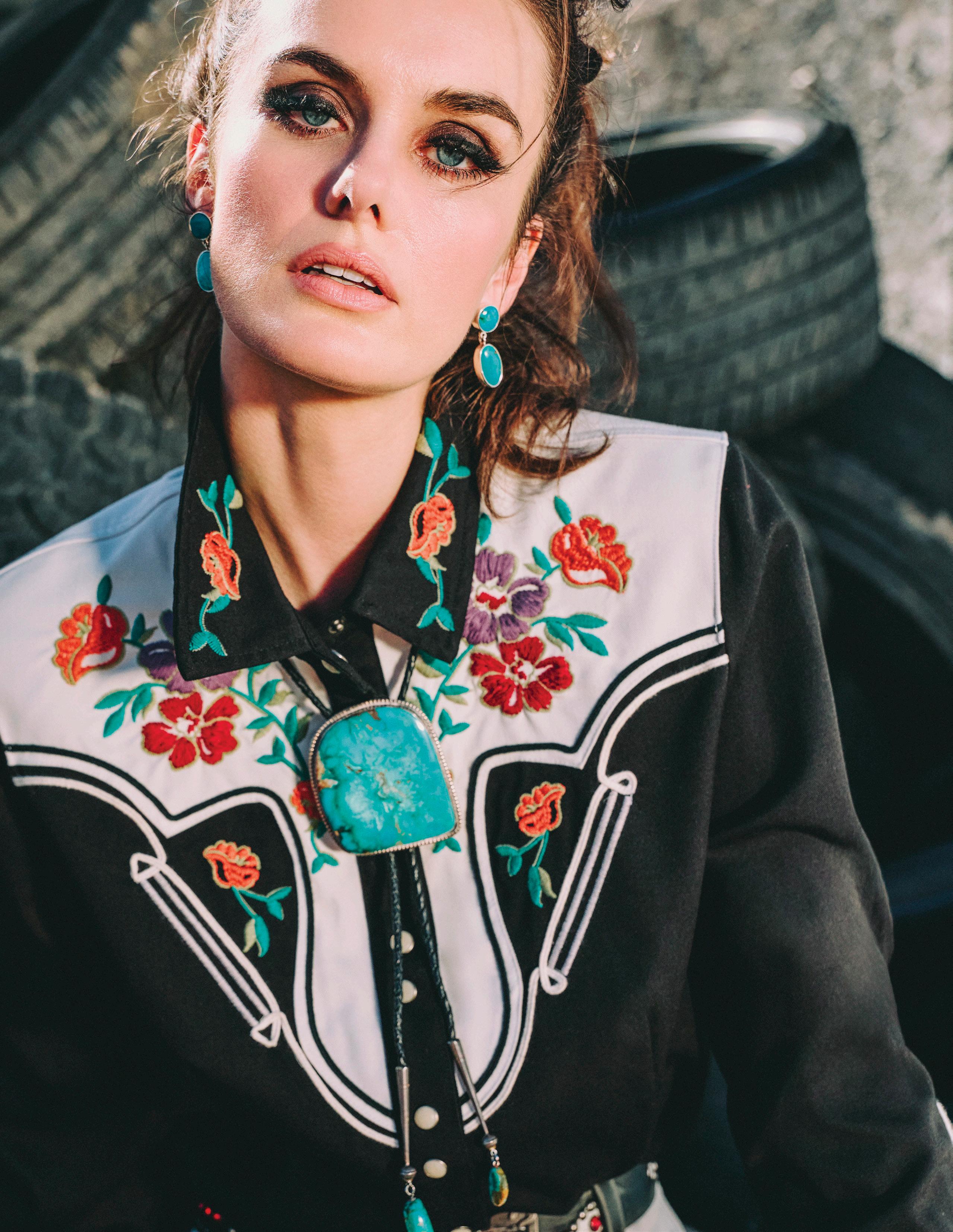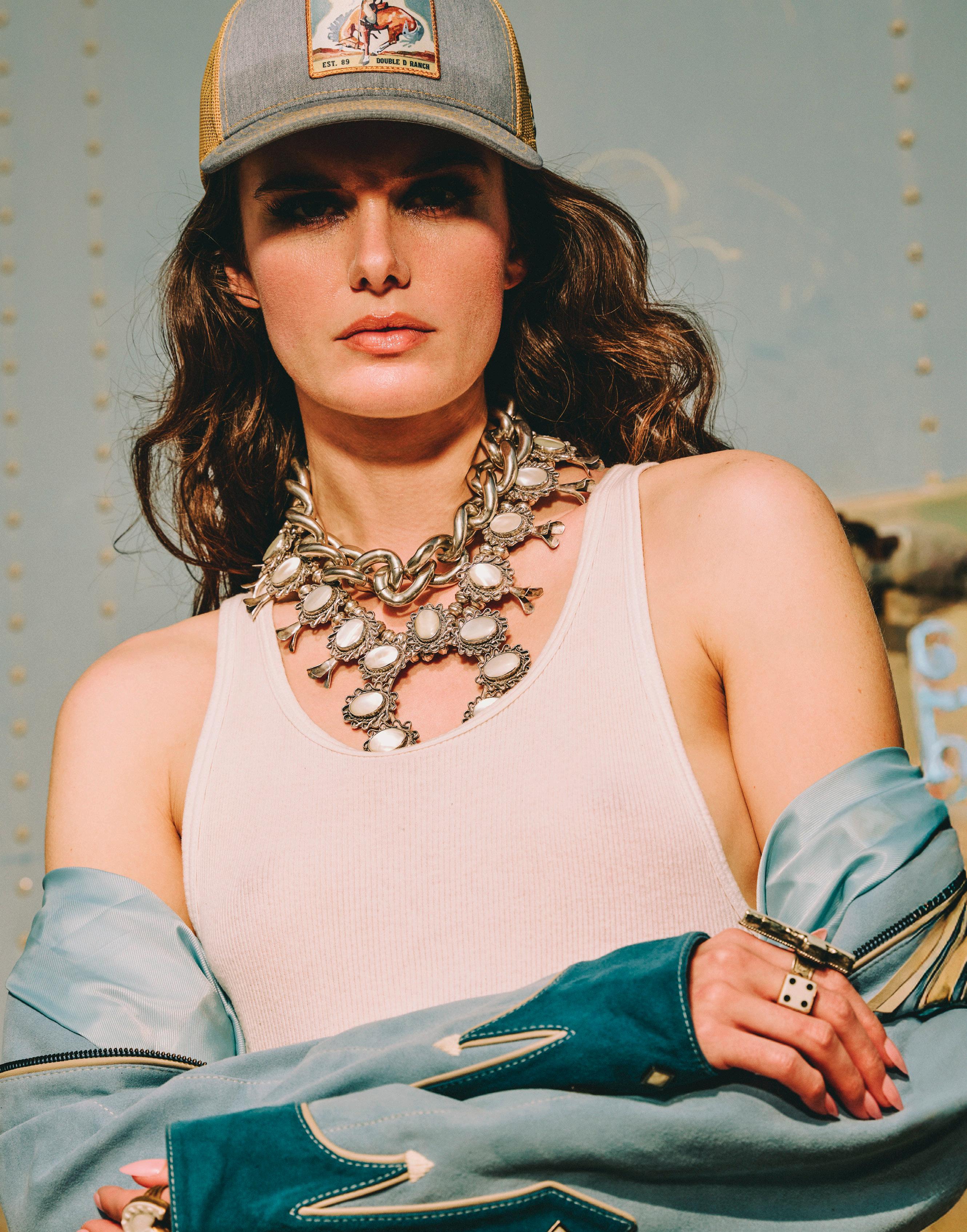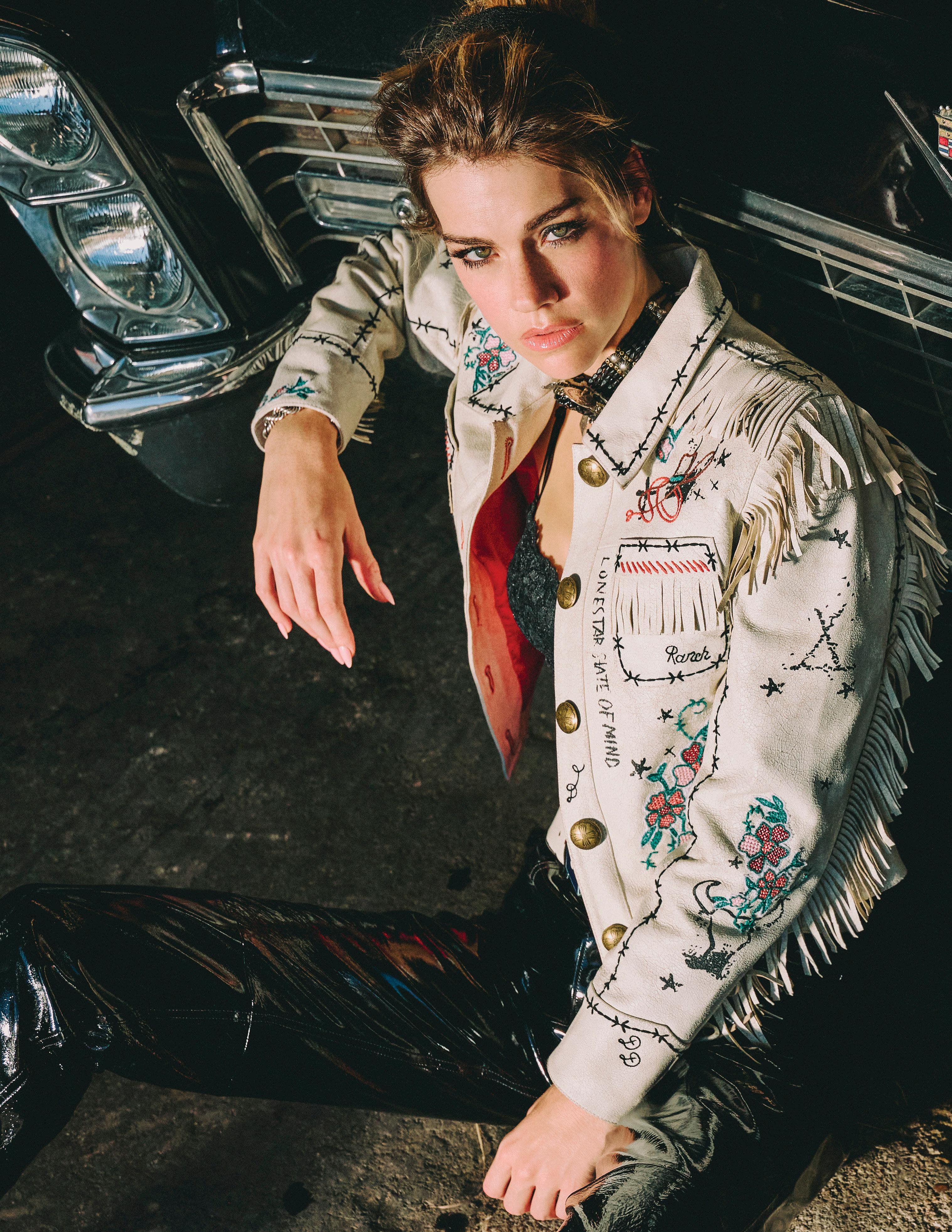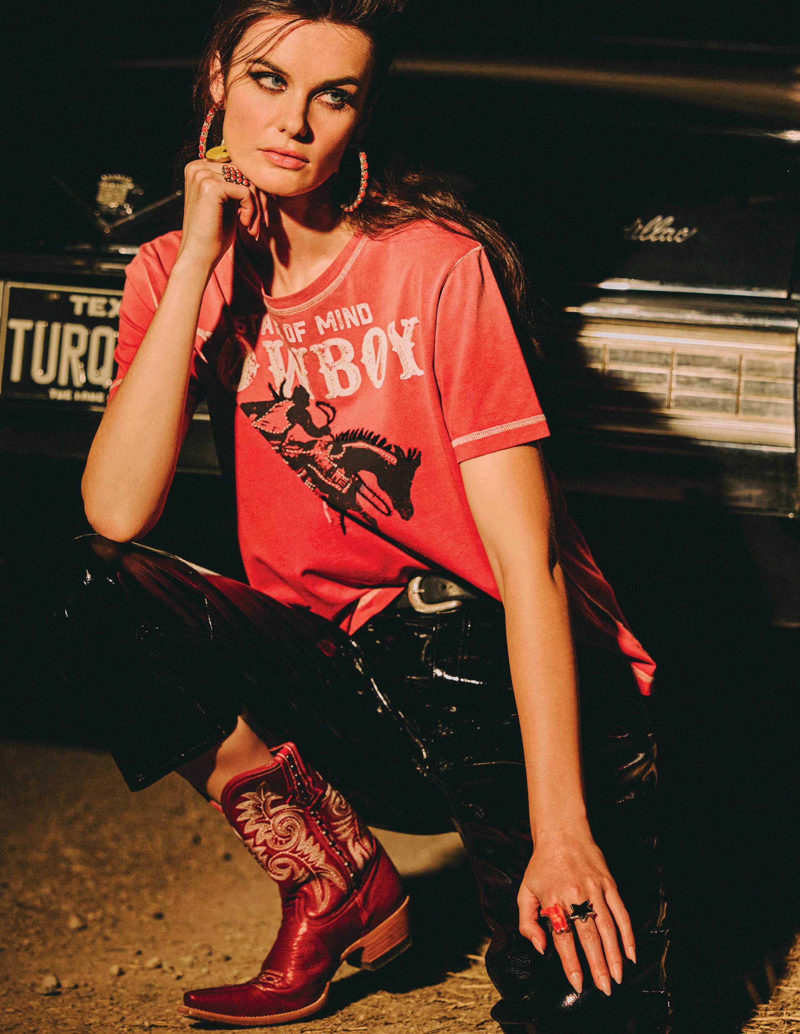 COWBOY GRAFFITI JACKET, HOWDY DOTTY SHORT, CITY SLICKER HAT, LONG TALL SALLY BOOT, OSCAR BETZ FOR DOUBLE D RANCH, DOUBLE D RANCH JEWELRY, VINTAGE DOUBLE