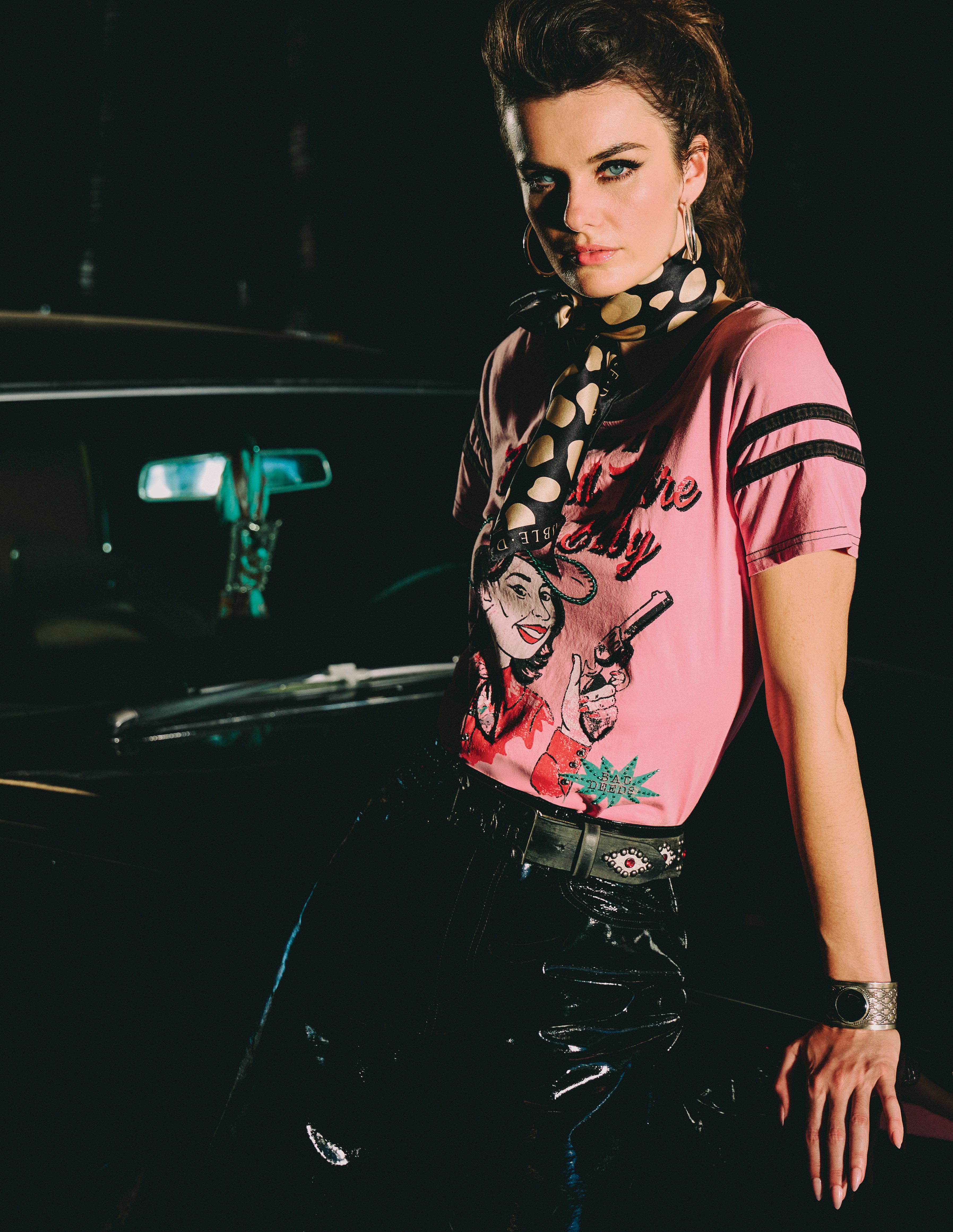 There’s a retro fondness and an irresistible edge, an outlaw undercurrent with intricate details to soften it. It falls somewhere between the Pink Ladies and punk rock, with a hint of a gambler’s soul.