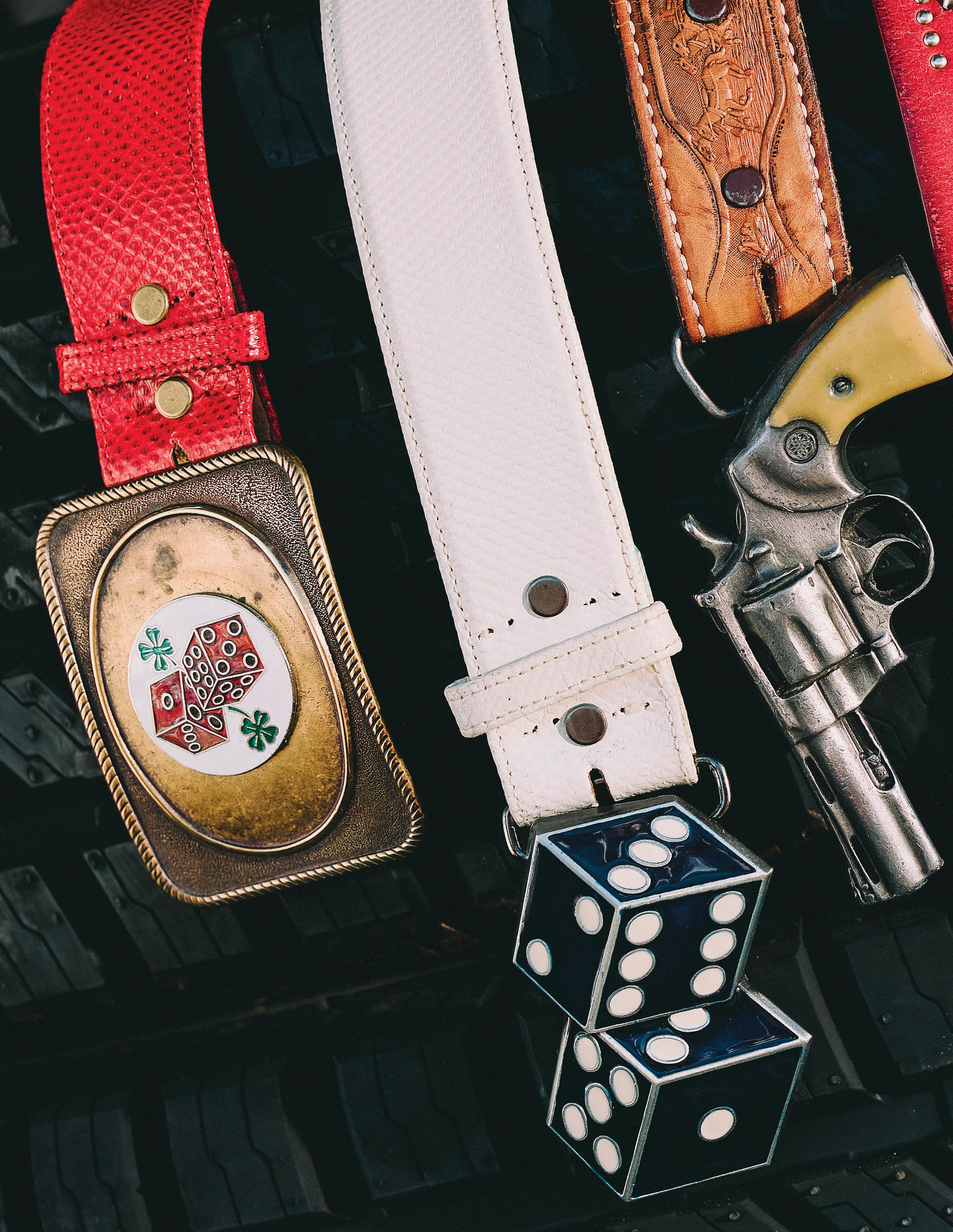 We’ll always love a classic concho or a vintage trophy buckle, but to complement this collection, we are all about embracing – and elevating – the kitsch. For more than a year, we scouted and hand-selected items with the right attitude (some were buckles, some were made into buckles) and affixed them to vintage leather straps to create these OAK belts that are compliment-getters and conversation-starters.