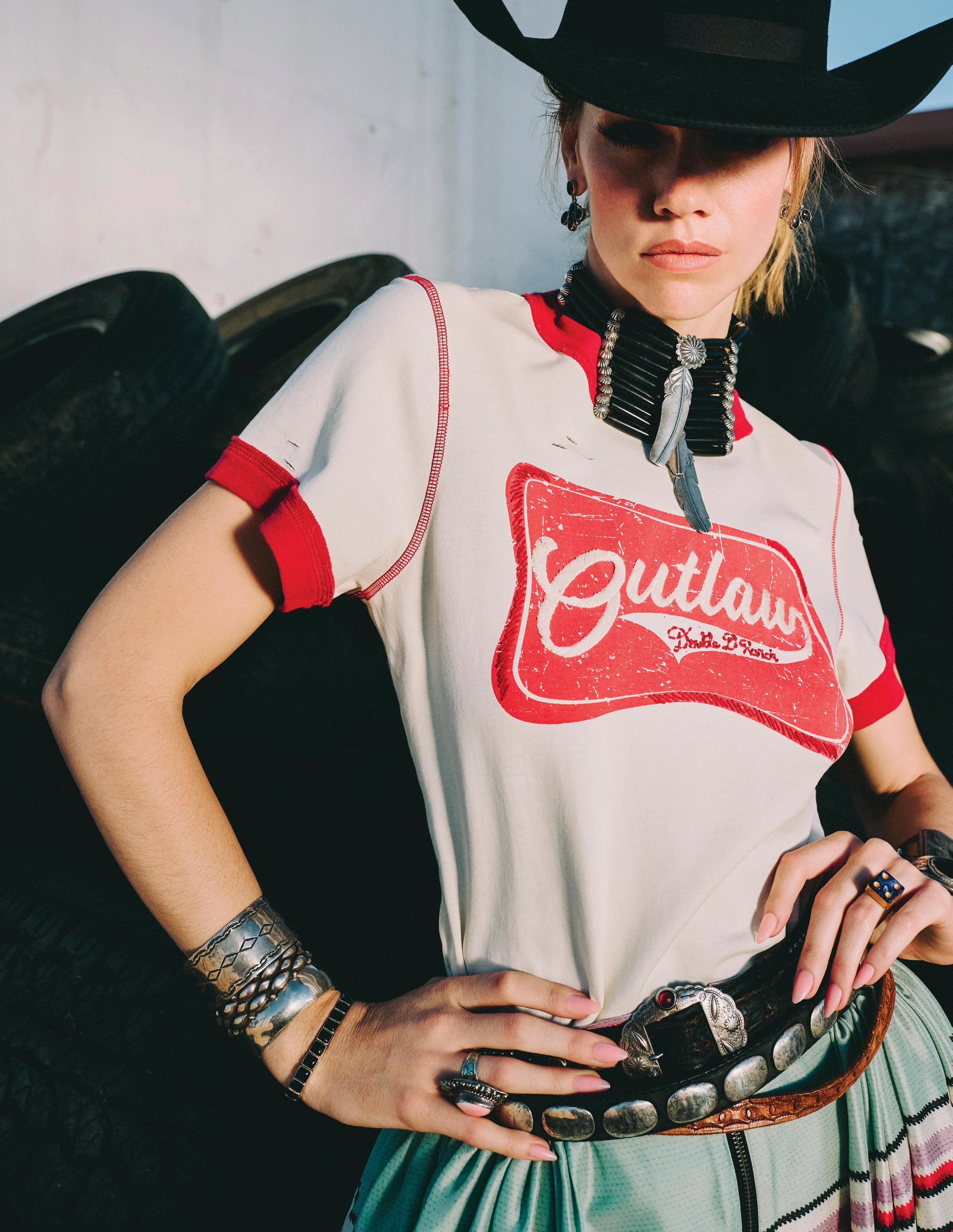Roadside Relics Top, Roadside Relics Pant, Spaghetti Western Boot, Oscar Betz for Double D Ranch, Double D Ranch Jewelry, Stud Country Belt, Vintage Double D Ranch Belt, Double D Ranch