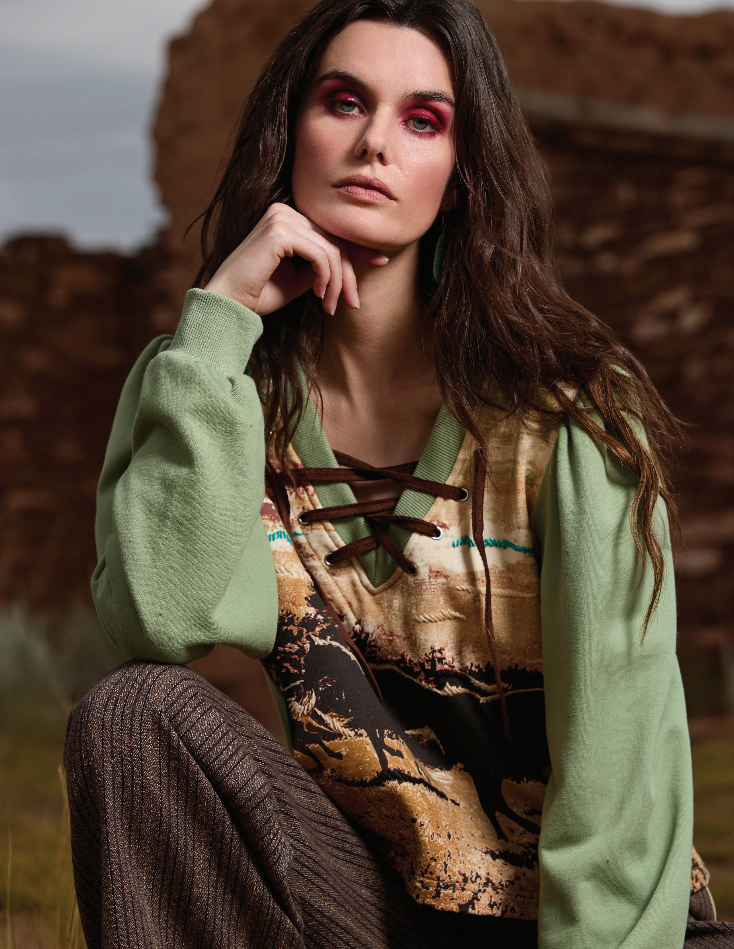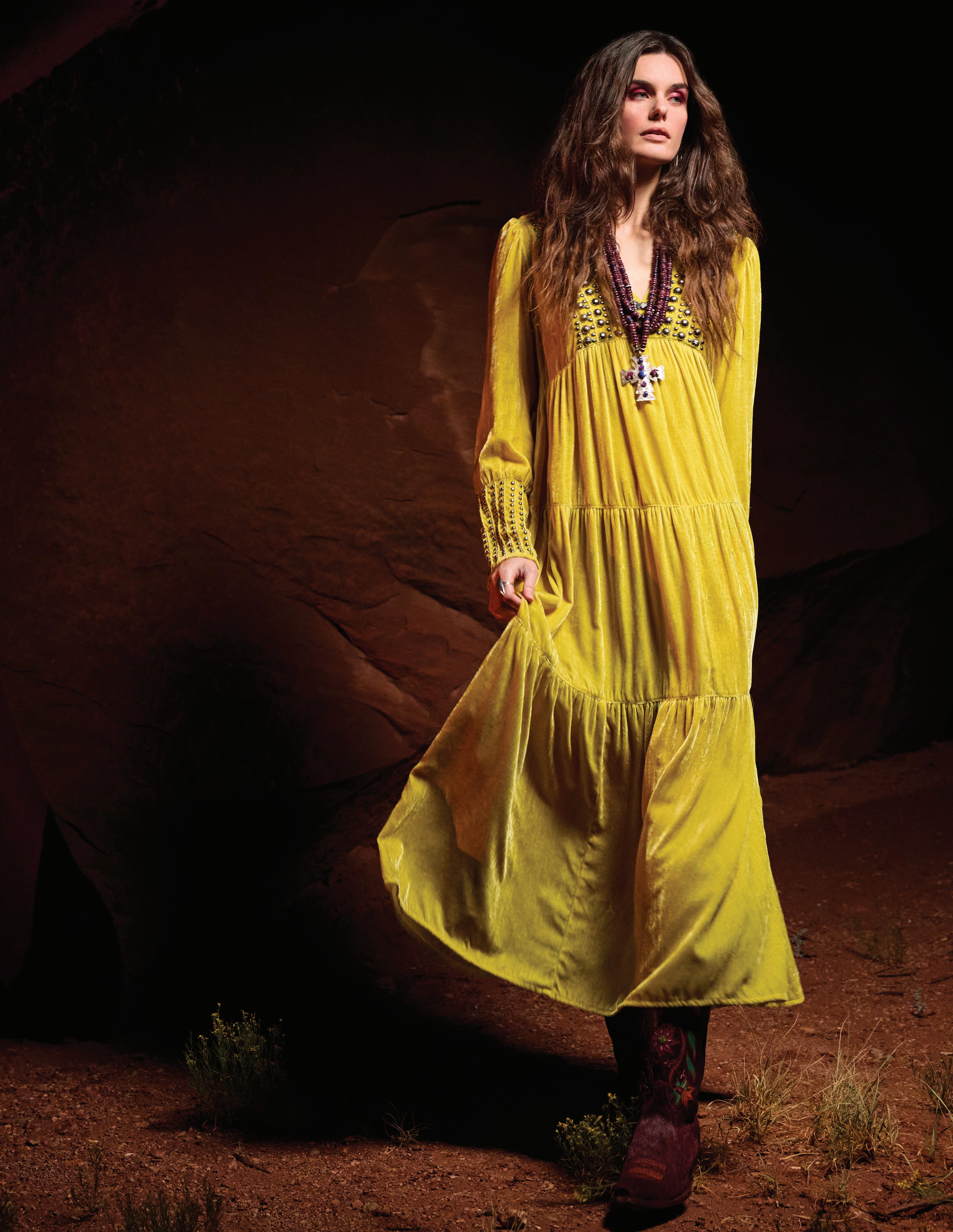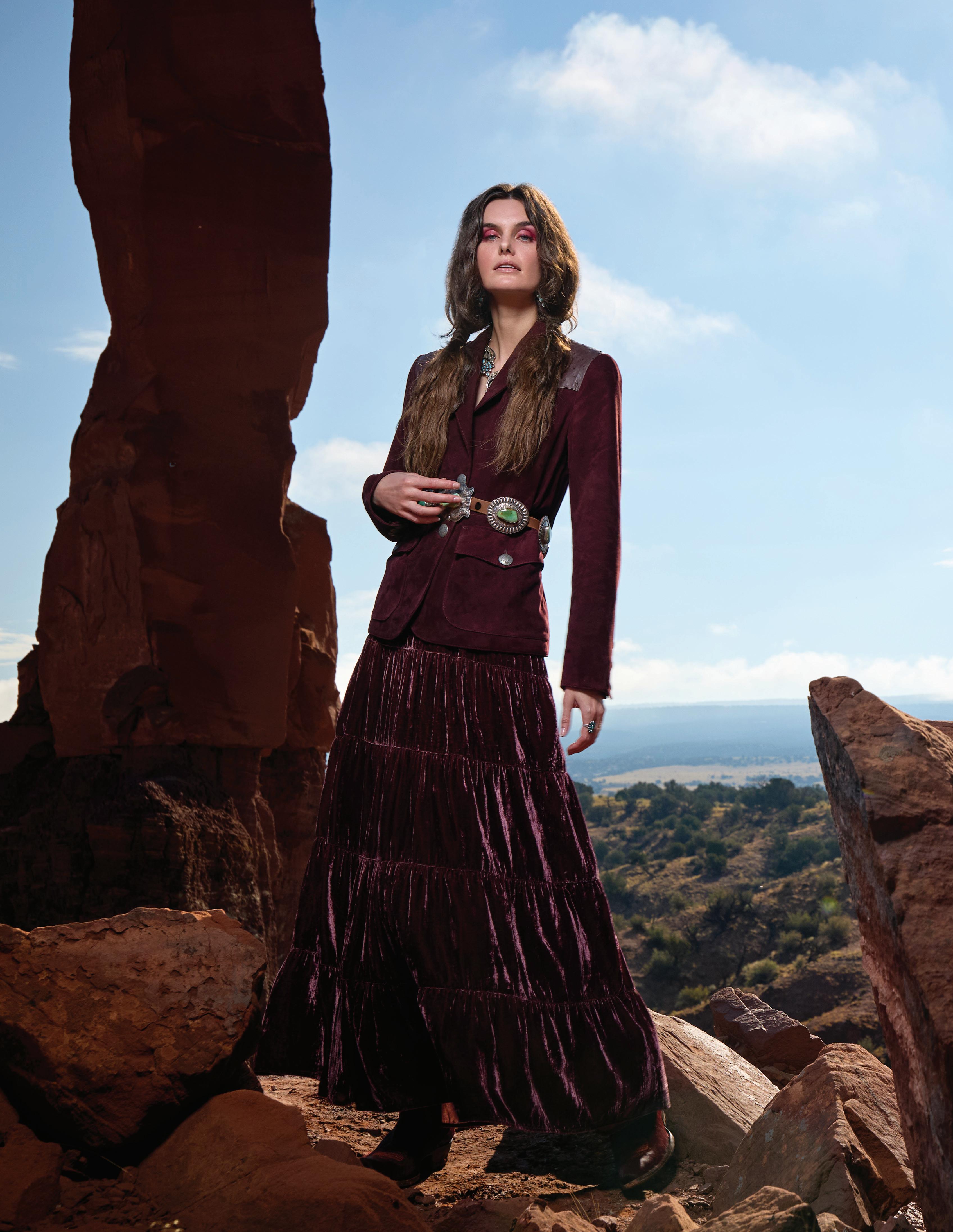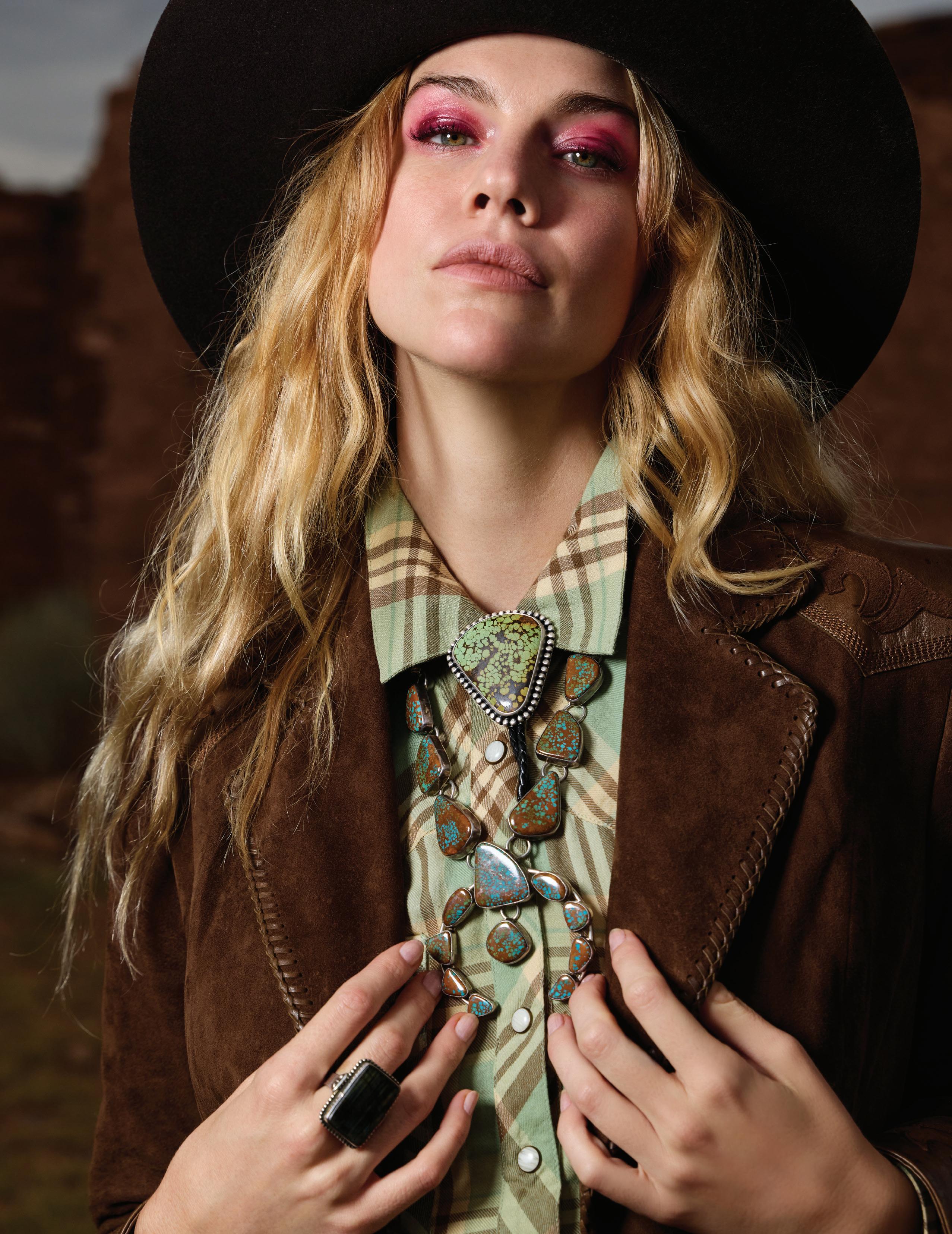 “I want to bend time. I want to send you back to your grandmother’s with a color palette, and then bring you to present day with a strong, gritand-grace cowgirl.“