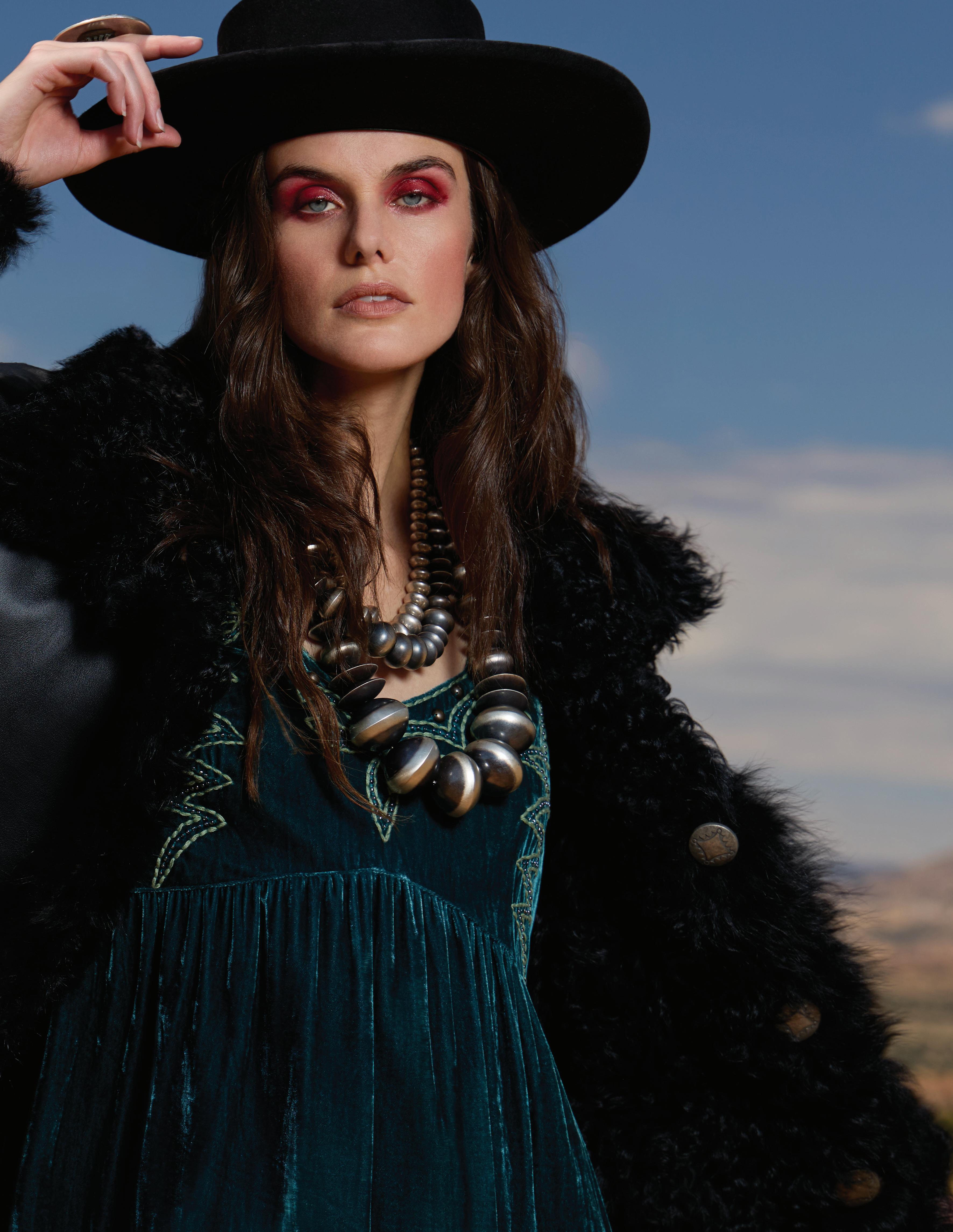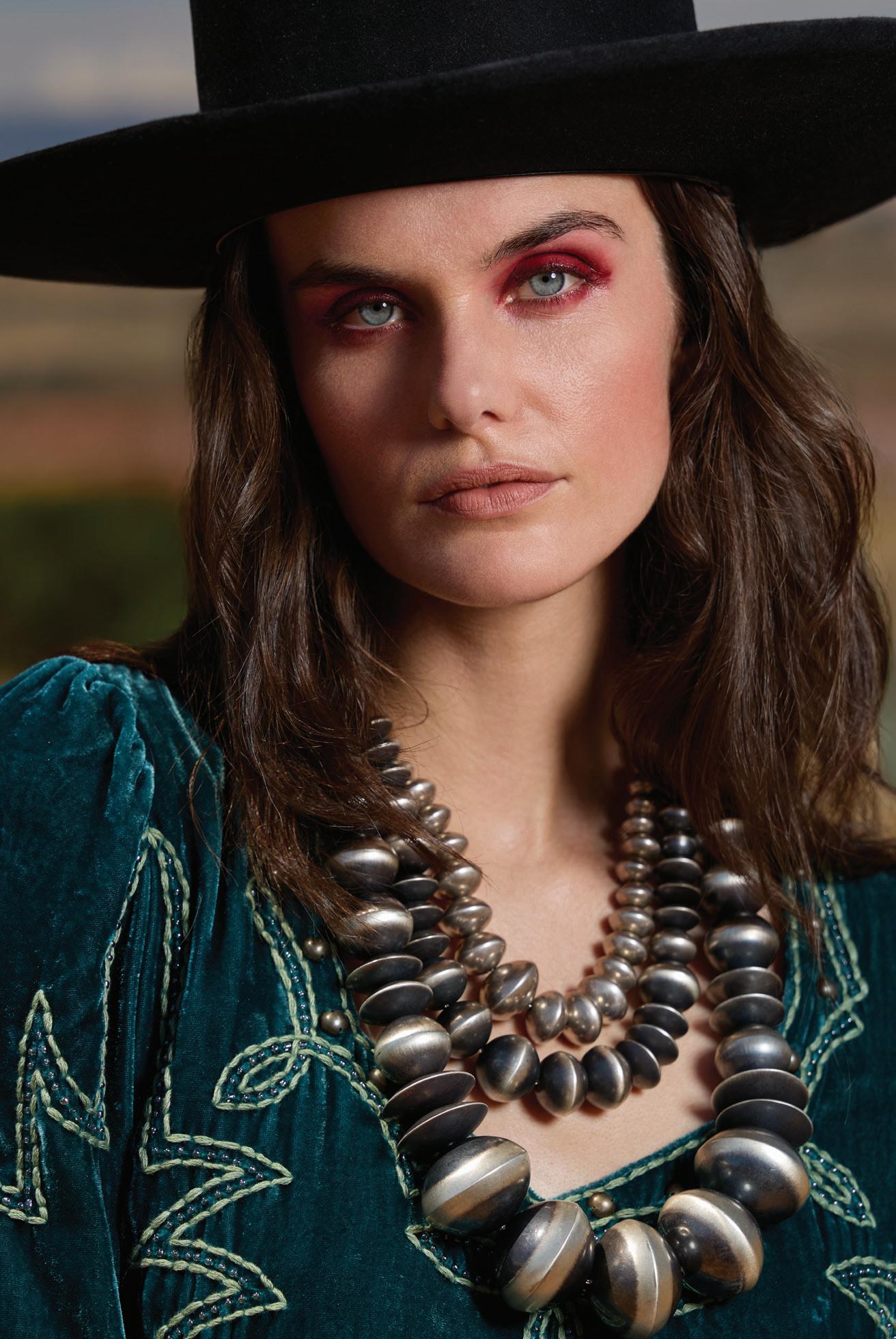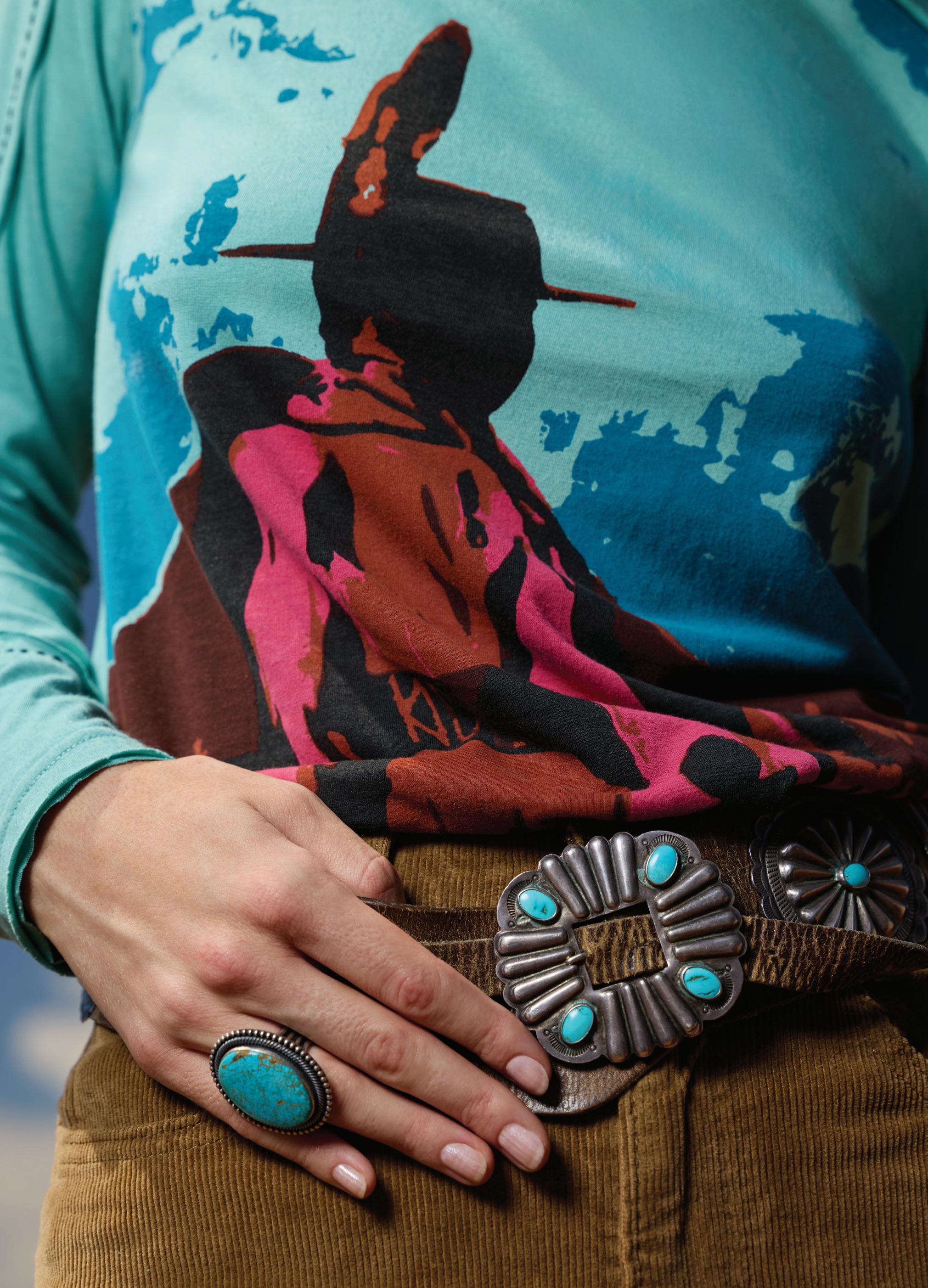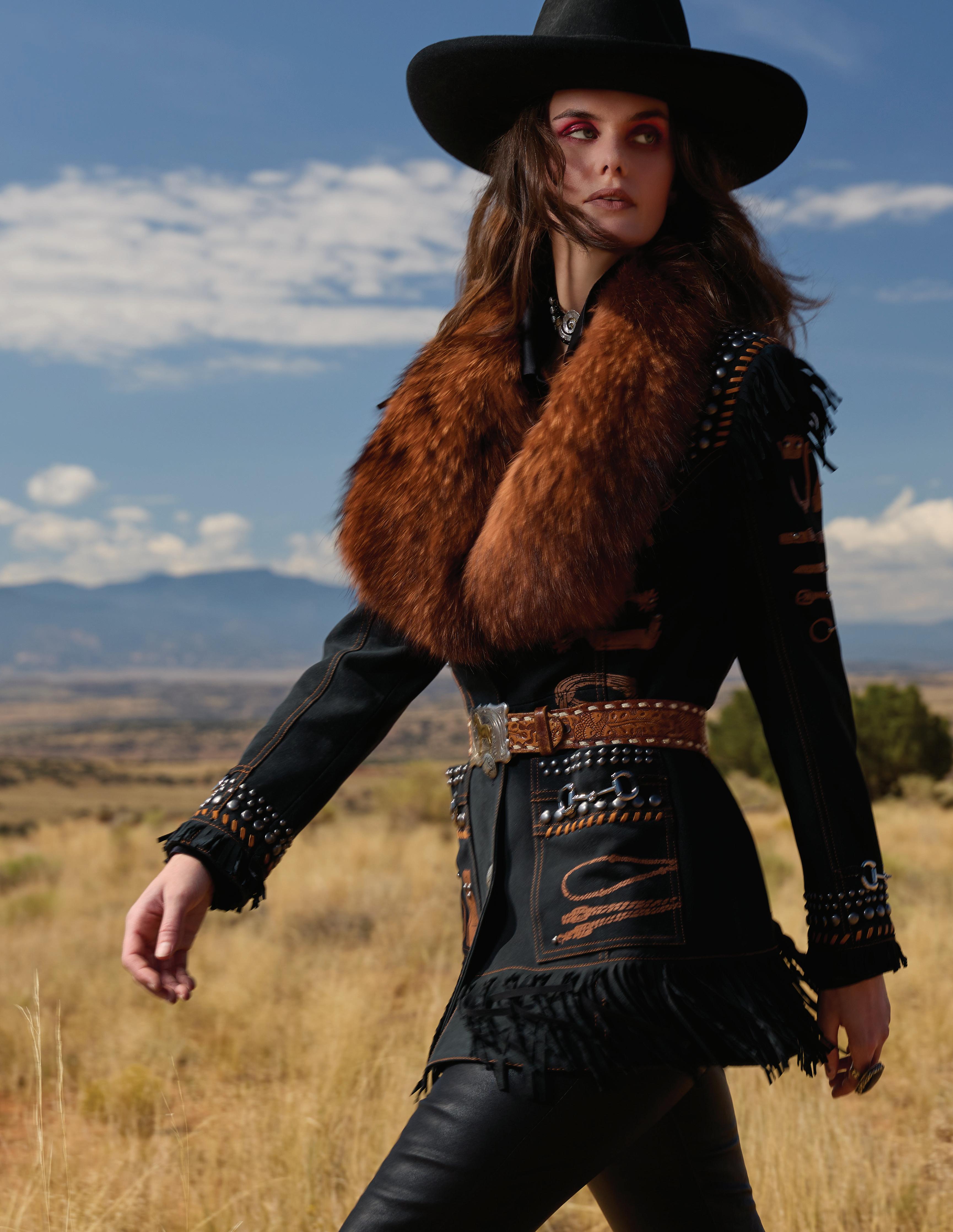 Her first love is photography. Her forte is enhancing those images with her interpretation of the American West. And now, her foray into fashion immortalizes her inimitable style in wearable works of art.