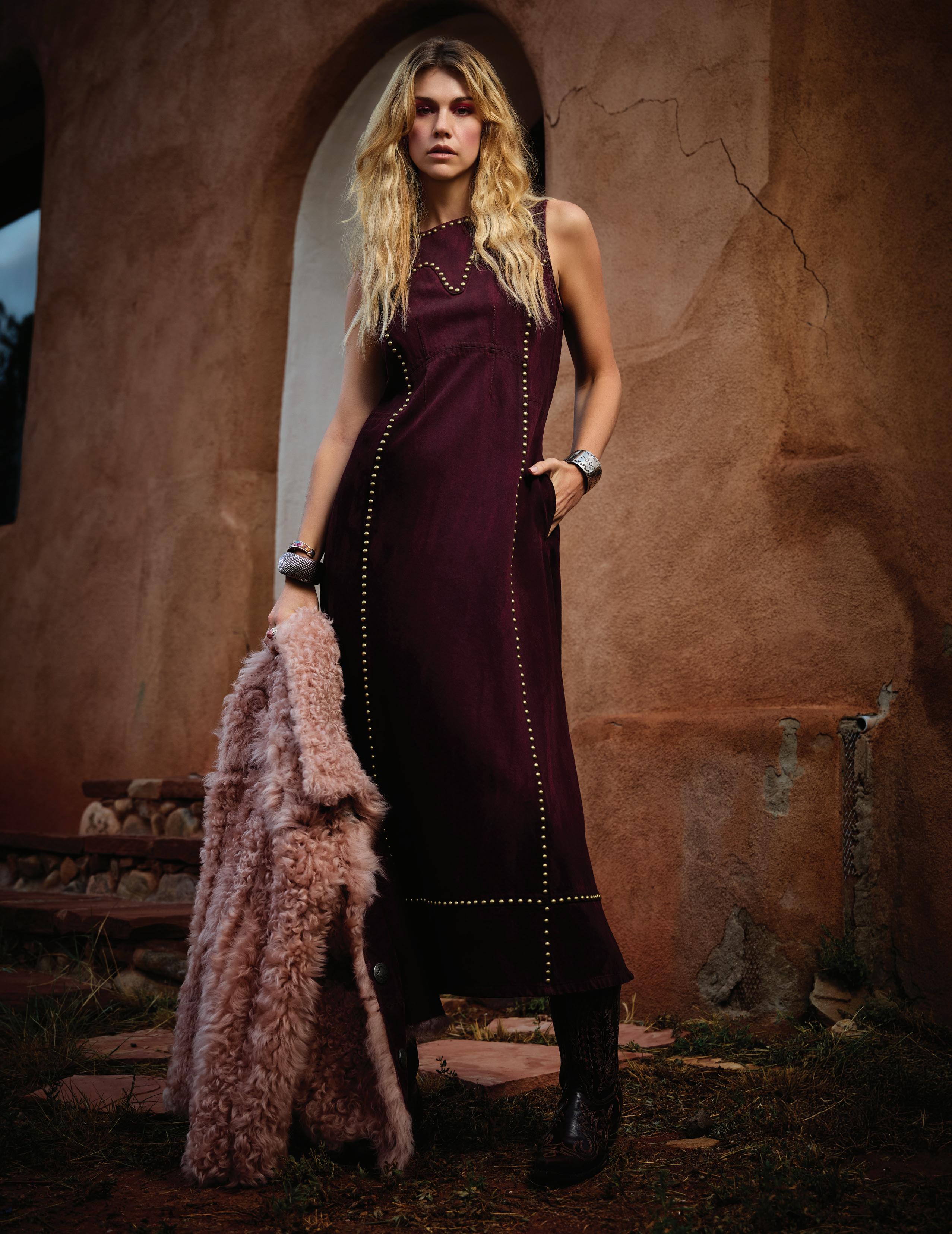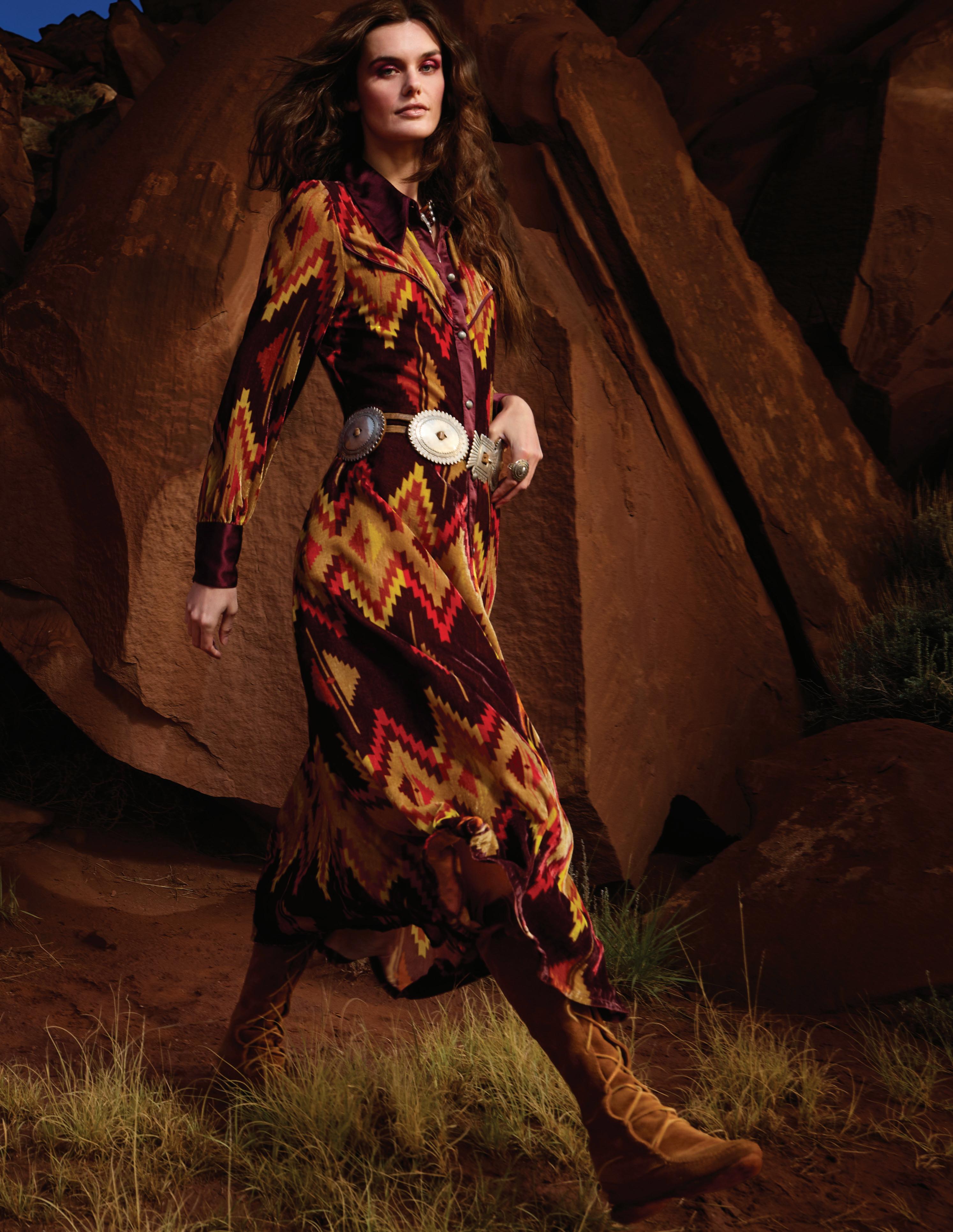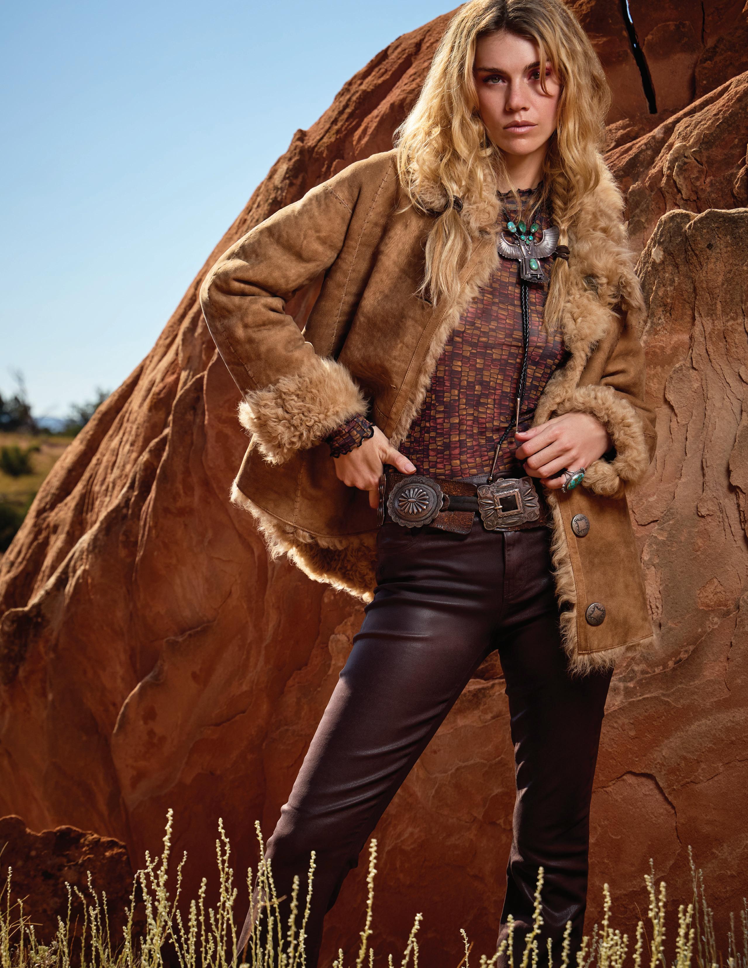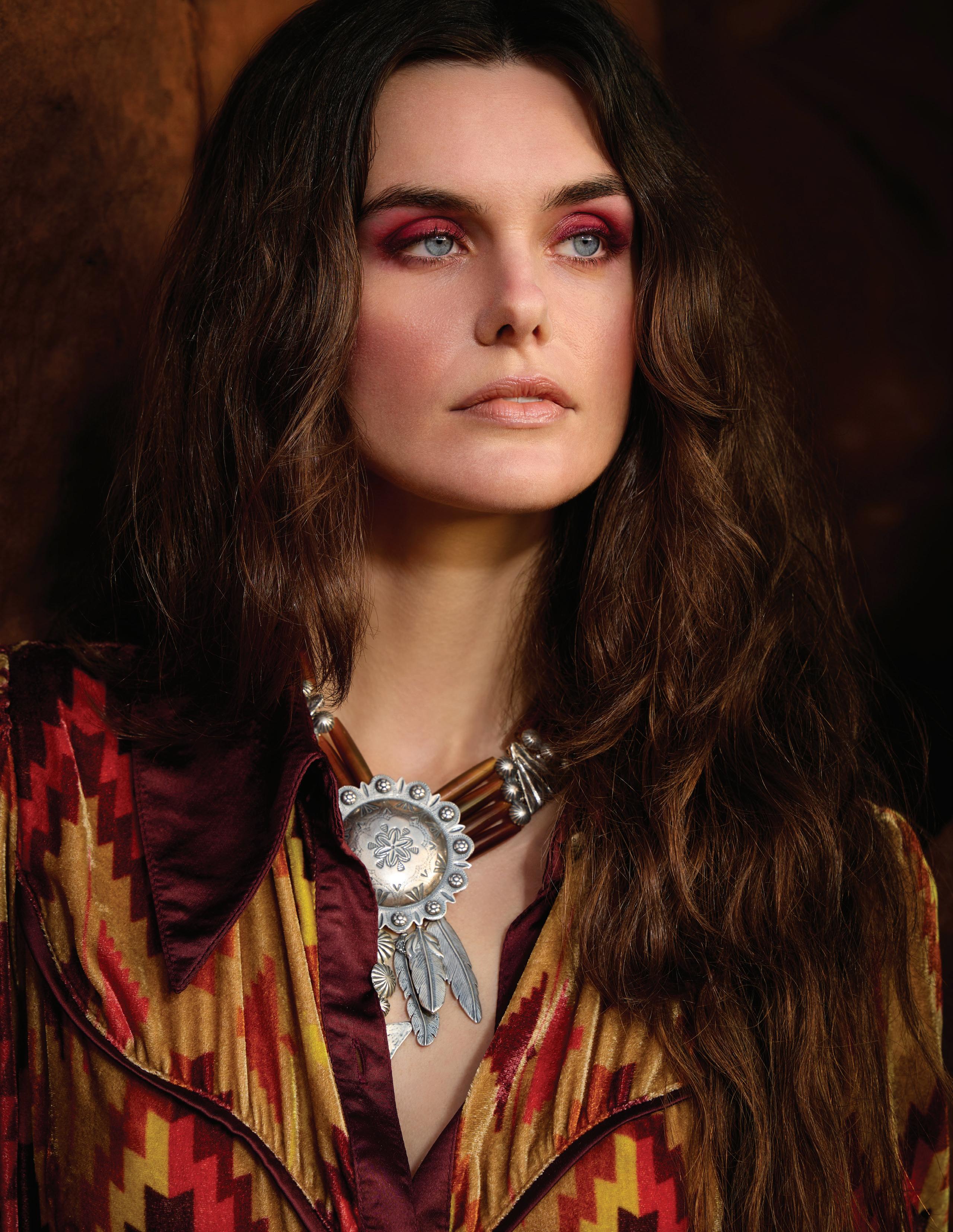 Her first love is photography. Her forte is enhancing those images with her interpretation of the American West. And now, her foray into fashion immortalizes her inimitable style in wearable works of art.