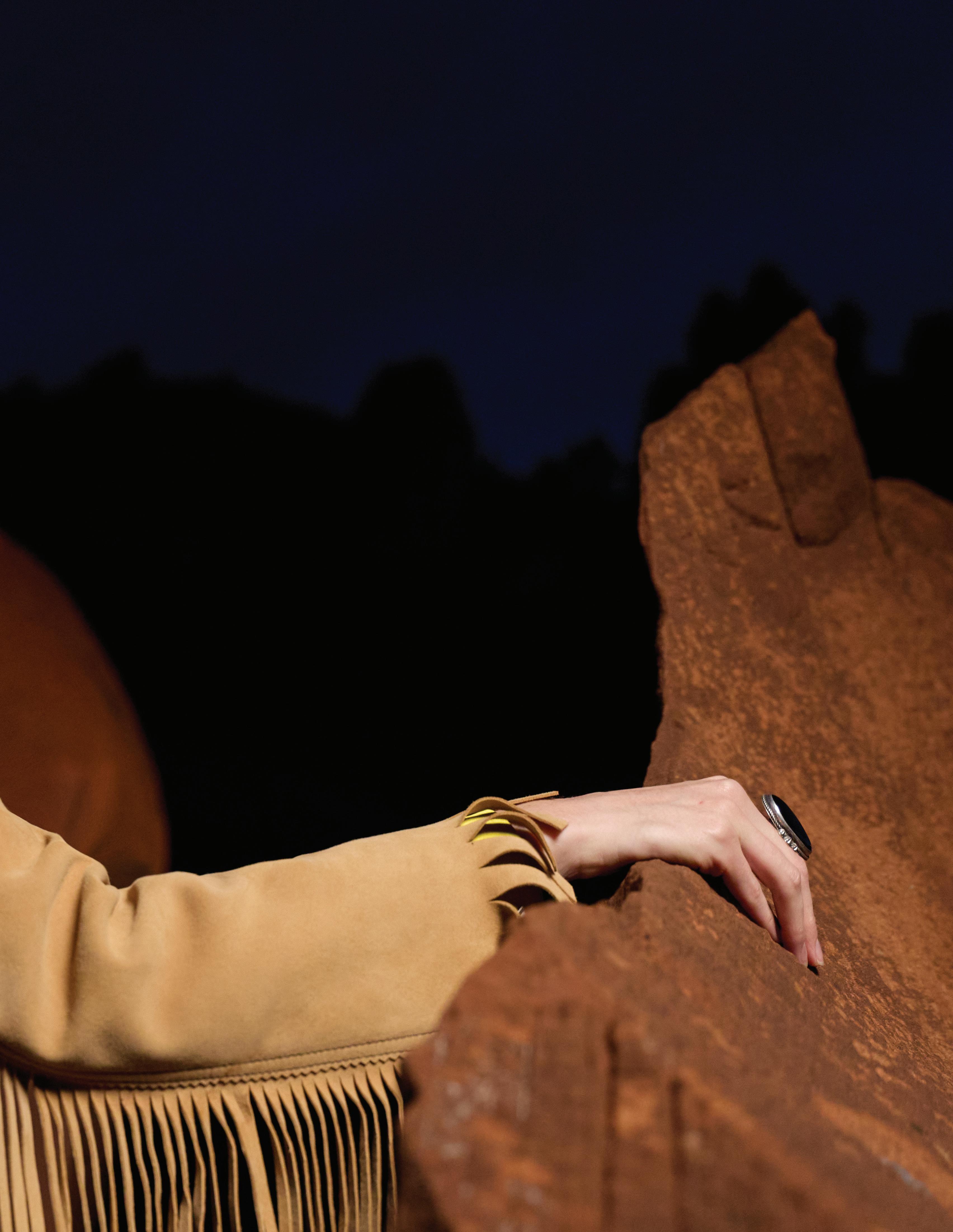 “When Kaylin emerged from the Ghost Ranch rocks in the Ameah Dreaming Jacket, I actually gasped,” Maura recalled. “It was like she was meant to be there, and that image was meant to be on that jacket. It felt full circle.”