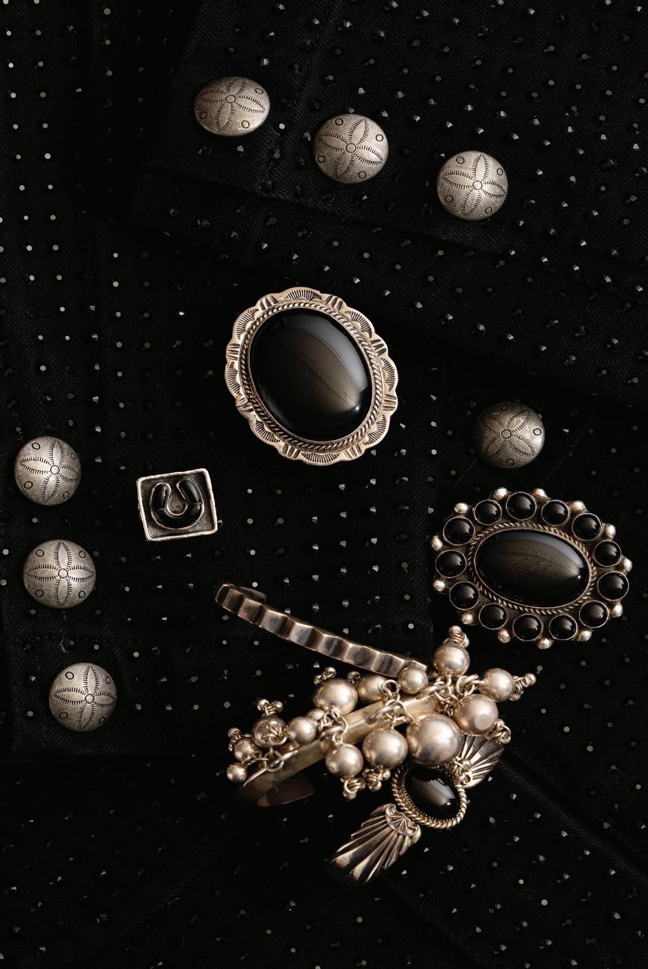 As silly and oversimplified as it might sound, the name of the game is surface area. Think specimen stones in your statement rings and squash blossoms, big broaches and cluster pins, even larger earrings, like broad Oscar Betz fans and Dennis Hogan hoops. But more than anything, we’re leaning strong into silver this season. Keep an eye out for all kinds of oversized conchos – of course, in belts, but also bolos, scarf slides, we’ve even found some cool rings and earrings that have been repurposed that provide that statement silver aesthetic. We’re also eyeing a lot of trophy buckles, sizable silver shields with an array of embellishments that can add your own pop of personality, from lassos to longhorns. Another thing we’re obsessing over is enormous desert pearls; they’re a bit more elusive and definitely an investment piece, but our own mother can attest that if you can find a strand, you will wear them for life.