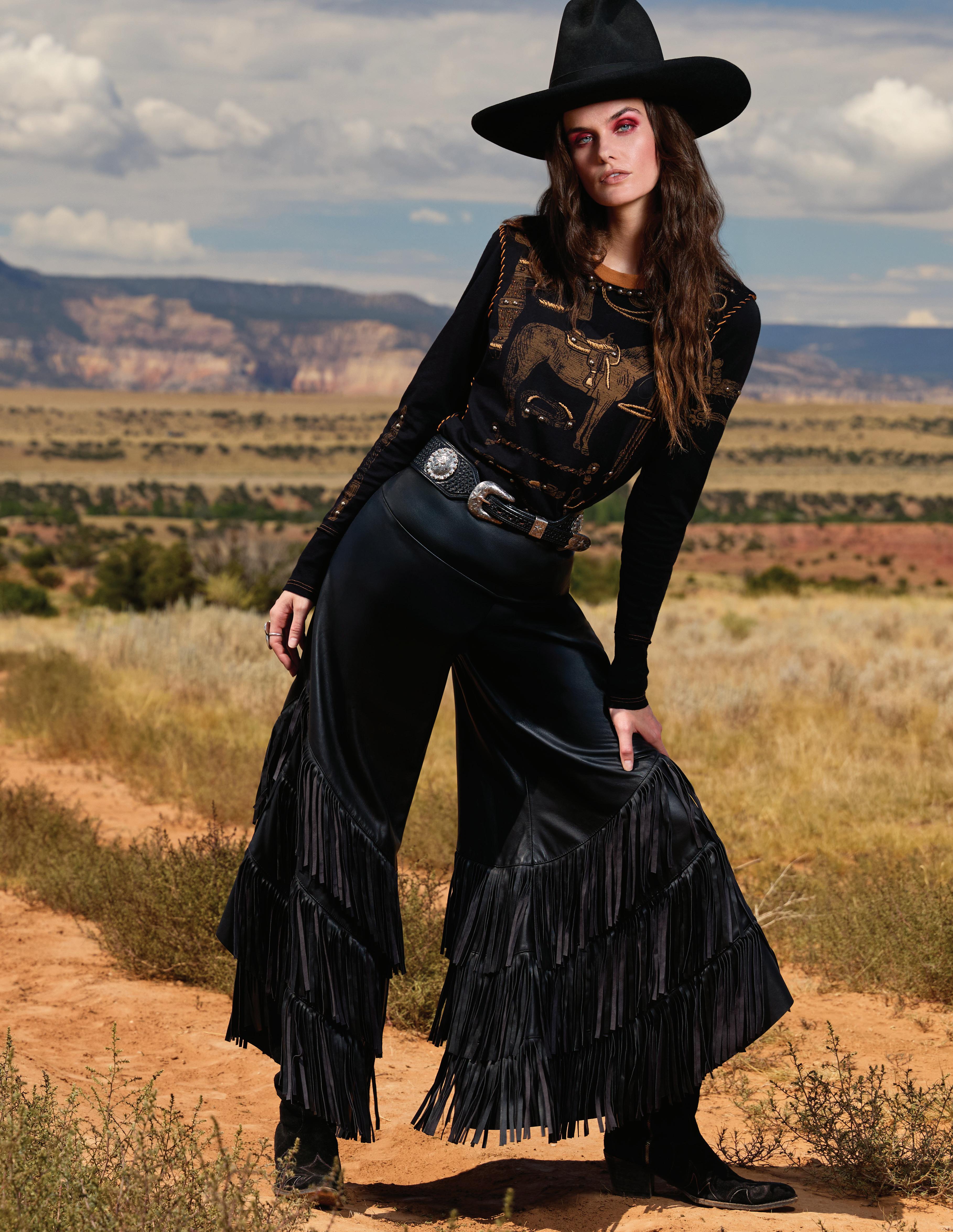 It’s inherently Western. Without cows, there’s no such thing as cowgirls, right? It can work anywhere from uptown brunch to downtown date night, but it’s rodeo-ready right out of the gate.