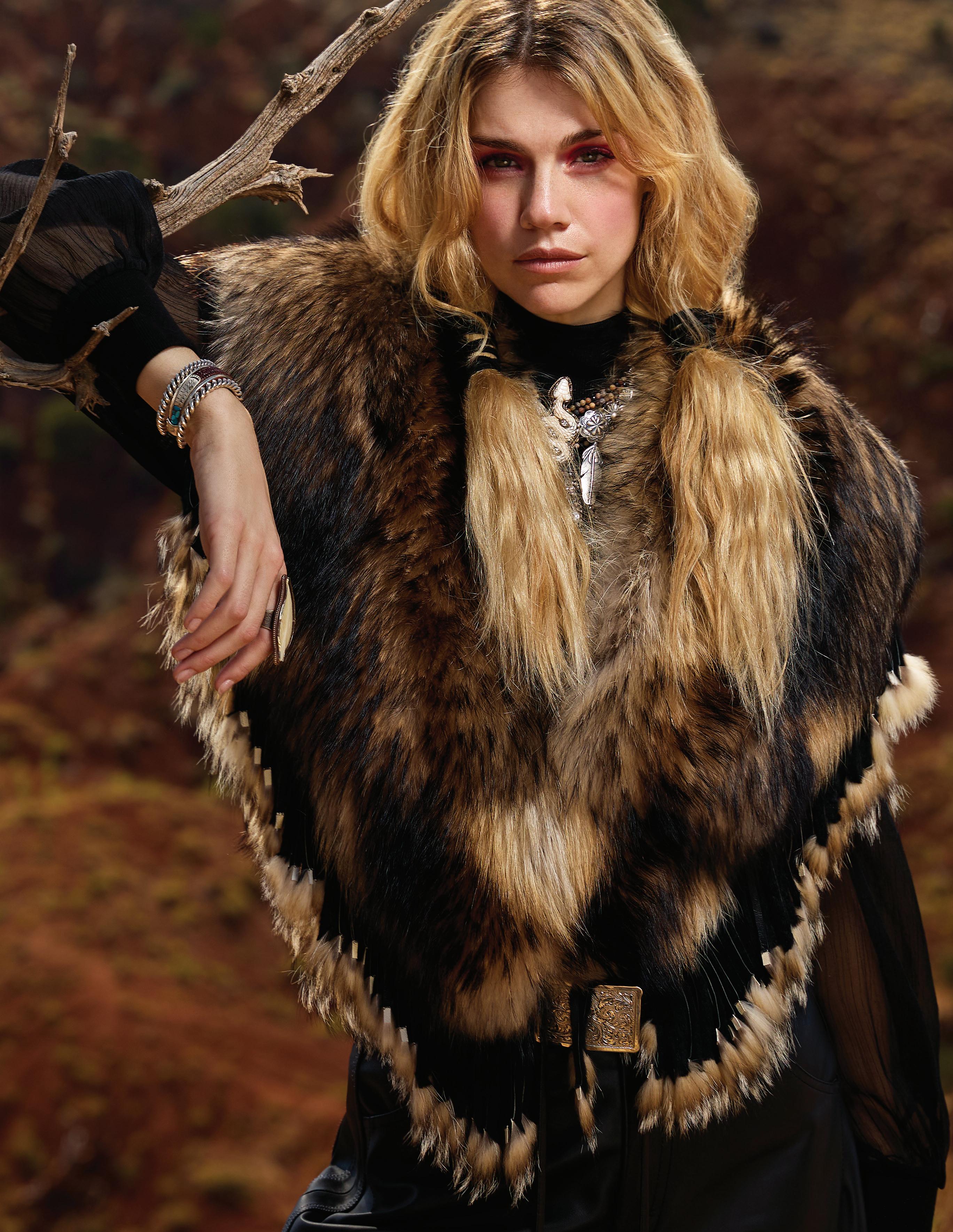Revolutionize your wardrobe with a single piece. It’s not a coat, it’s not even a cape – it’s a collar. Crafted from stunning SAGA-rated fur, this exquisite accessory is a dramatic draped pelt trimmed with an extraordinary detail of fur-tipped fringe. It’s in natural neutral hues, apt for elevating anything from a chambray pearl snap to your LBD.