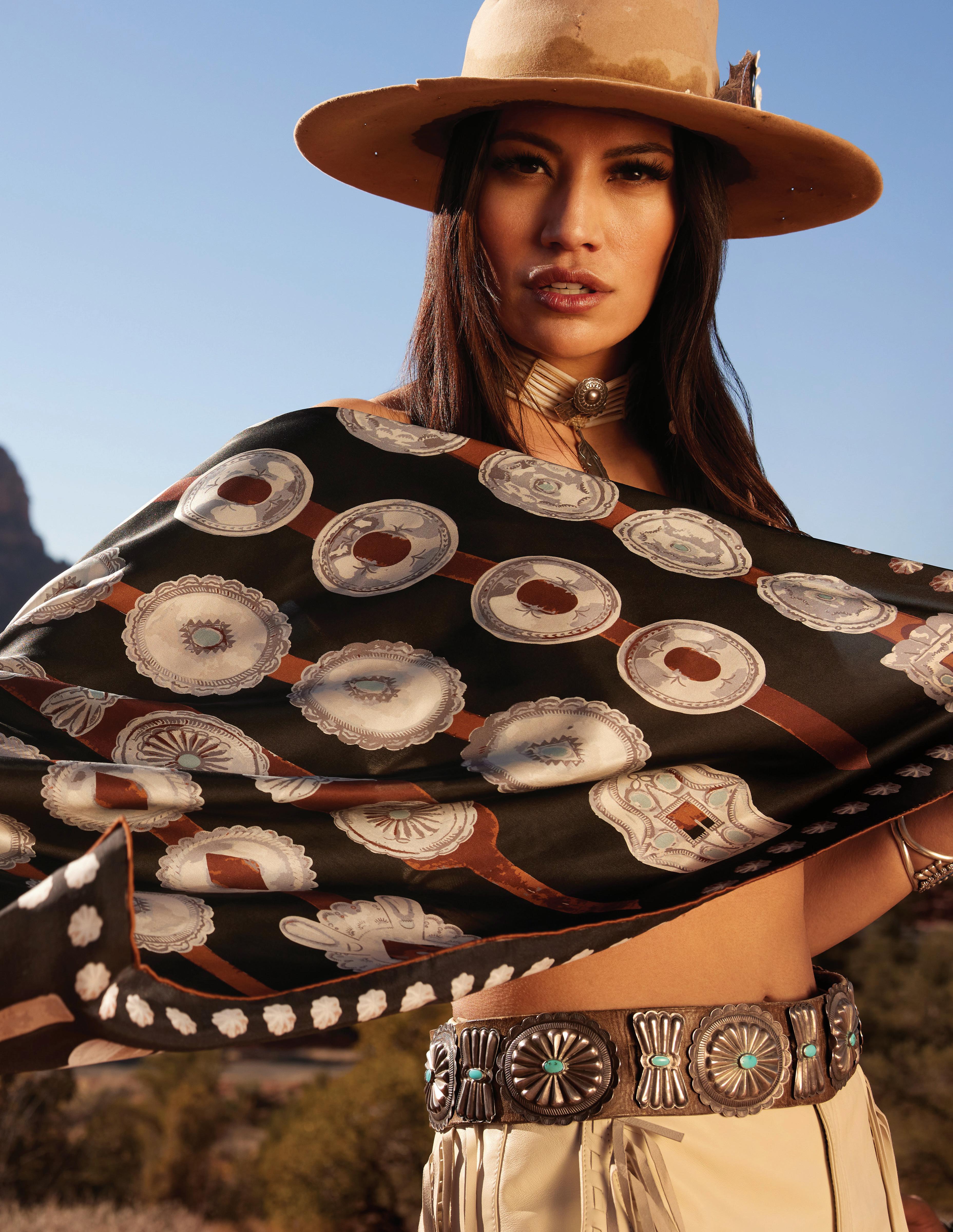 Ancestor’s Silver Jacket, Bryce Henley Top, Monument Valley Skirt, Double D Ranch Jewelry, Double D Ranch Accessory