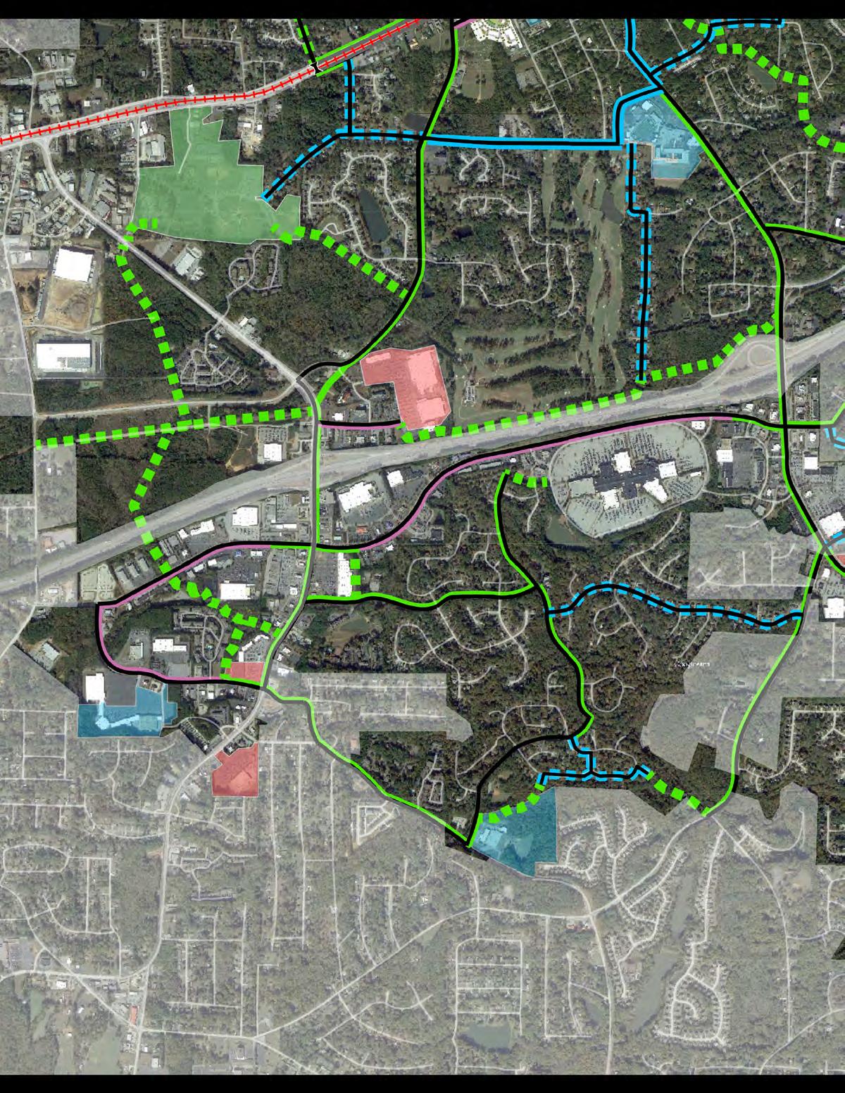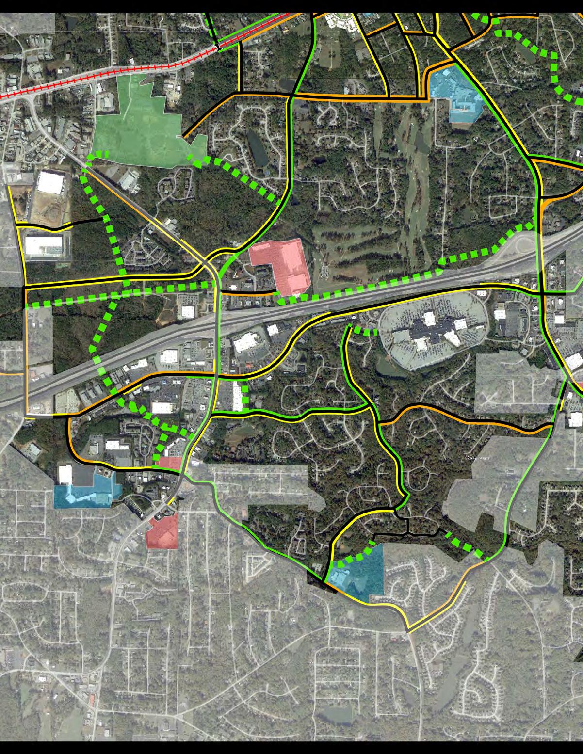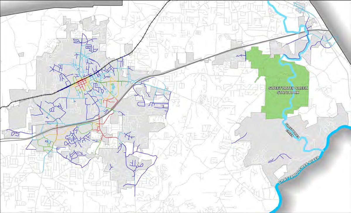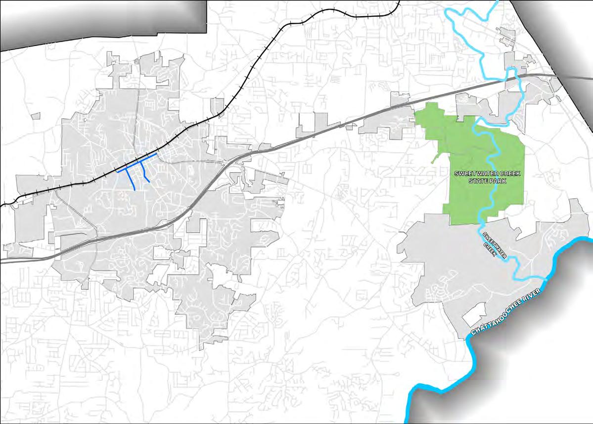 The City of Douglasville is on the cusp of a transformation. The State Route 92 Bypass is nearing completion. When it opens, traffic that once caused noise and congestion at the at-grade railroad crossing in the heart of downtown will be routed around Douglasville to the northeast. Overnight, downtown will be transformed back into the quiet town center that it used to be. This is an incredible opportunity. It is the perfect time for Douglasville to pivot into a place that promotes active transportation to boost its economy and the health and happiness of its citizens. In order to act upon this once-in-a-lifetime opportunity, the City of Douglasville retained AECOM to study the connectivity of the existing pedestrian and bicycling network to provide a path forward. The result of that effort is a list of 122 projects prioritized based on their value as first steps. These recommendations can be found in the final chapter starting on page 188.
