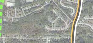 To begin, we survey the conditions in the City of Douglasville. We identify destinations of interest that we will use throughout the rest of the study. We map out the density of jobs and worker residences to understand the spatial distribution of people and work throughout the City limits. We take stock of the roads in the City of Douglasville, making note of characteristics such as speed, volume, and number of lanes to determine how comfortable they are for our design users. Then we map out the active transportation infrastructure that exists on the ground today. Finally, we map out natural characteristics such as streams and easements to identify potential connections that would be missed if we studied only the street network.