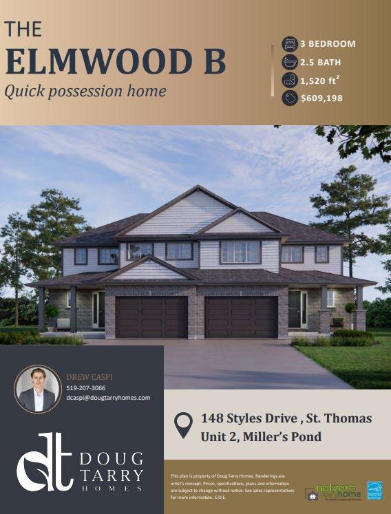 Investing in an ENERGY STAR® Net Zero home is one of the smartest choices you can make — for your wallet, your comfort, and the planet. These homes are built to the highest standards of energy efficiency, combining advanced construction techniques, superior insulation, highperformance windows, and top-tier HVAC systems to dramatically reduce energy use. Paired with renewable energy like solar panels, a Net Zero home can eliminate your utility bills entirely. Beyond the savings, you'll enjoy a quieter, healthier, and more comfortable living environment with consistent indoor temperatures and cleaner air. Plus, as energy costs rise and sustainability becomes a top priority, Net Zero homes are not only future-proof — they’re likely to command a higher resale value. With green financing, and long-term savings, ENERGY STAR Net Zero homes simply offer more: more comfort, more value, and more peace of mind. All Doug Tarry Homes are Energy Star Net Zero ready homes. Come see the Doug Tarry Difference, we are sure to have House that you can call Home.