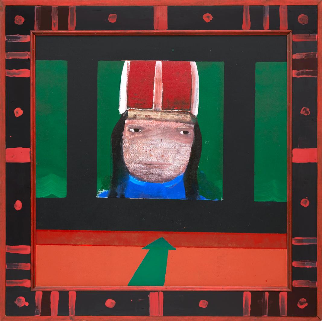 Robert Hamilton, Vicky in Red Helmet, n.d., Oil on Masonite, 40 × 40 in.