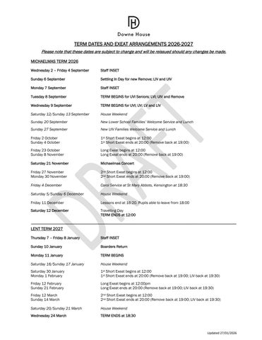 TERM DATES AND EXEAT ARRANGEMENTS 2026-2027