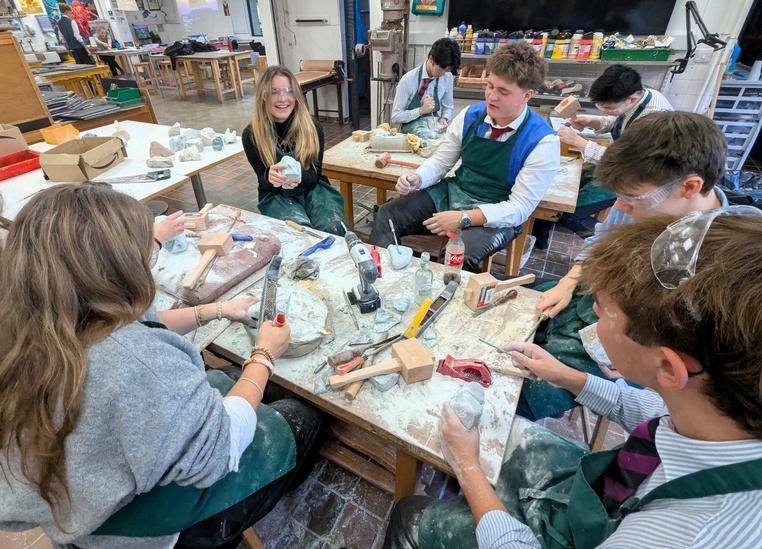 OurarttriptoRadleyCollegewasaninspiring and practical day We began with short talks on four sculptors: Constantin Brancusi, Barbara Hepworth, Henry Moore, and Emily Young, presented by the boys, which helped us understand different approaches to form and carving. The main focus of the day was soapstone carving We gradually shaped our pieces by responding to the material and carving direct without a clear design. We also hadlunchatRadley,followedbyagallerytour and a talk with the artist Erin Rosalie, who shared insights into her practice We were then able to finish off our sculptures before sandingthemtocreateasmooth surface,