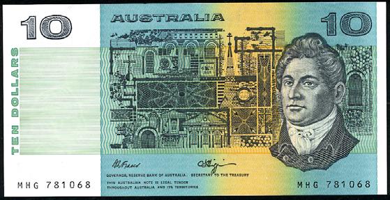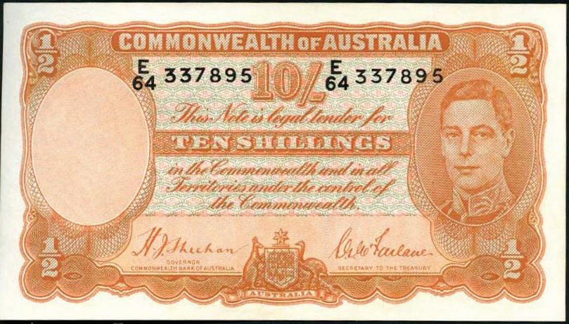 1972 $2 R84 Phillips/Wheeler Commonwealth Banner Uncirculated Banknote Consecutive Pair $180 34628 1974 $2 R85 Phillips/Wheeler Australia Banner Uncirculated Banknote Consecutive Pair $160 AR321 1983 $2 R88 Johnston/Stone Uncirculated Banknote Consecutive Pair $50 33949 1974 R205 $5 Phillips/Wheeler Australia Banner Uncirculated Banknote Consecutive Pair $395 33951 1979 R207 $5 Knight/Stone Uncirculated Banknote Consecutive Pair $98 33953 1985 R209a $5 Johnston/Fraser OCR-B Uncirculated Banknote Consecutive Pair $96 33955 1990 R212 $5 Fraser/Higgins Uncirculated Banknote Consecutive Pair $94 14026 1992 R214 $5 Fraser/Cole Uncirculated Banknote Consecutive Pair $75 14032 2001 R219 $5 Macfarlane/Evans Federation Uncirculated Banknote Consecutive Pair $69.95 33957 1972 R304 $10 Phillips/Wheeler Commonwealth Banner Uncirculated Banknote Consecutive Pair $240 33959 1990 R312 $10 Fraser/Higgins Uncirculated Banknote Consecutive Pair $110 33961 1991 R313b $10 Fraser/Cole no PIL Uncirculated Banknote Consecutive Pair $130 AP401 1993 R316 $10 Fraser/Evans Uncirculated Banknote Consecutive Pair $89 33963 1976 R406a $20 Knight/Wheeler Centre Thread Uncirculated Banknote Consecutive Pair $625 33965 1983 R408 $20 Johnston/Stone Uncirculated Banknote Consecutive Pair $380 33967 1985 R409a $20 Johnston/Fraser OCR-B Uncirculated Banknote Consecutive Pair $208 33969 1989 R411 $20 Phillips/Fraser Uncirculated Banknote Consecutive Pair $288 33971 1990 R412 $20 Fraser/Higgins Uncirculated Banknote Consecutive Pair $240 33973 1991 R413 $20 Fraser/Cole Uncirculated Banknote Consecutive Pair $208 AS865 1993 R415 $20 Fraser/Evans Uncirculated Banknote Consecutive Pair $198 Page 12 - Australian Predecimal Banknotes 20759 George VI 1939-52 10/- Complete Signature Uncirculated 4-Note Set $4,995 27476 1927 £1 R26 Riddle/Heathershaw Fine-Very Fine Banknote $695 10043 1942 £1 R30b Armitage/McFarlane Uncirculated Banknote $695 32587 1918 £5 R37b Cerutty/Collins Fair-Fine with faults Banknote $995 Order online safely and securely at www.downies.com