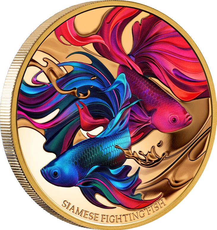 A stunning synthesis of sparkling 99.9% pure silver and vibrant colour, this Niue legal tender tribute to Siamese Fighting Fish is an inspired work of modern minting. With the mintage set at just 1,000 coins, time is the essence for those interested in this precious metal masterpiece. Don’t let this be ‘the one that got away’!