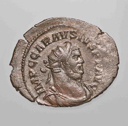 In 286AD, Carausius declared himself Emperor of Britain and northern Gaul after sentenced to death by Emperor Maximian for crimes against the empire. With Rome supplying no coinage, he set up a mint in London, striking coins in his name until he was killed in 293AD by his treasurer, Allectus.