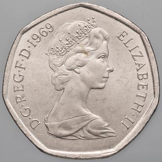 Scarce in gEF, the misalignment of dies gives this example of the first 50p a ‘lip’, with obverse rim wider.