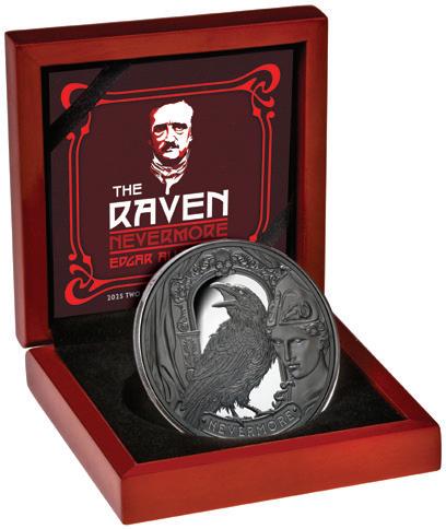Celebrating the 180th anniversary of one of the world’s most famous poems, The Raven 2025 $5 2oz Silver Black Proof is a haunting piece of numismatic art.