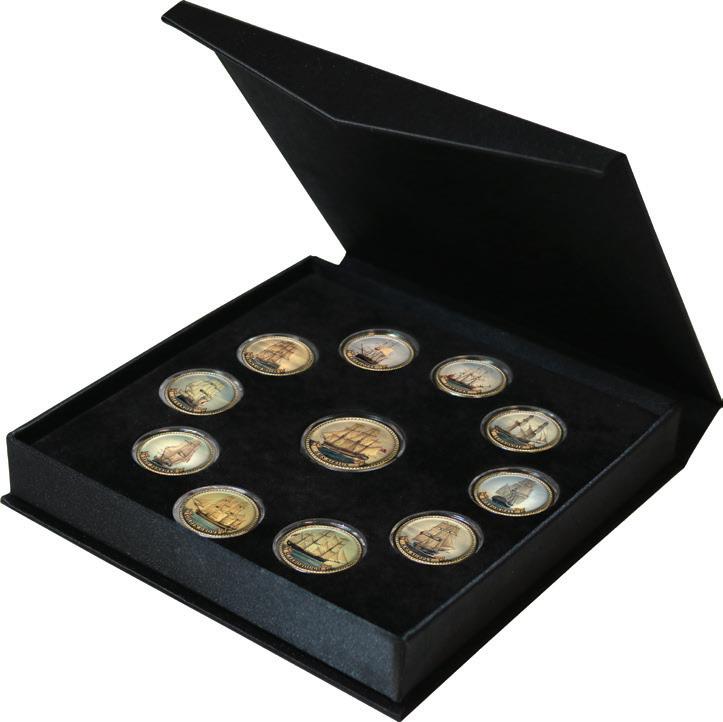 A glorious voyage into the past, this gold-plated set comprises ten Australian halfpennies and one penny – each portraying one of the eleven ships of the First Fleet!