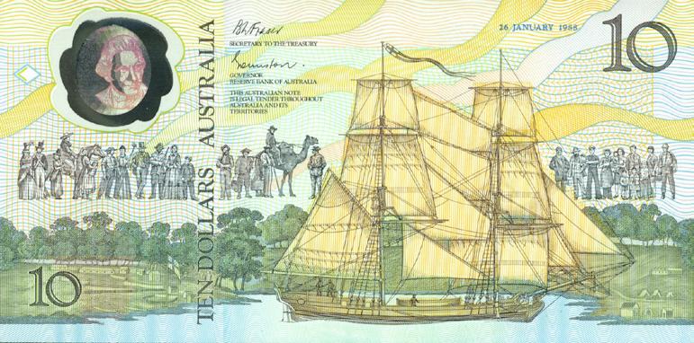 With the Whitlam ALP government seeking to express our increasing independence from Britain, the banner on our notes changed from ‘Commonwealth of Australia’ to ‘Australia’ during the Phillips/Wheeler signature combination.