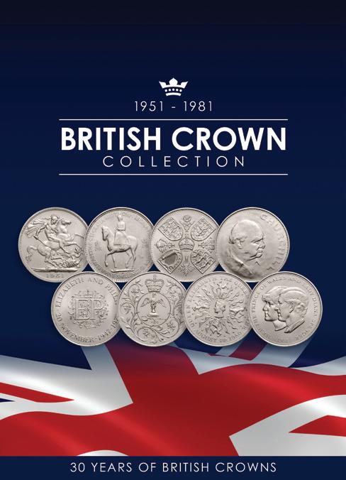 Capturing an important slice of British history, and featuring such iconic coins as the 1951 Festival of Britain Crown, 1953 Coronation Crown, 1965 Churchill Crown and 1981 Royal Wedding Crown, each 8-coin collection is housed within an attractive, informative folder.