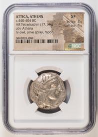 An everlasting artefact of Ancient Greece, and an emblem of Athens’ economic, political and military power, the Owl Silver Tetradrachm is one of the world’s most famous, most desirable coin types. A well-centred high relief example of the Classical style Silver Owl, we have this iconic Ancient Greek type in premium quality – graded at XF.