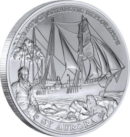 A maritime masterpiece, the crown-sized 1oz 99.9% silver flan carries a splendid depiction of Cook’s iconic ship, Resolution, in full sail, set against a spectacular full-colour backdrop. A superb touch, the outline of the colour motif portrays Cook in silhouette profile!