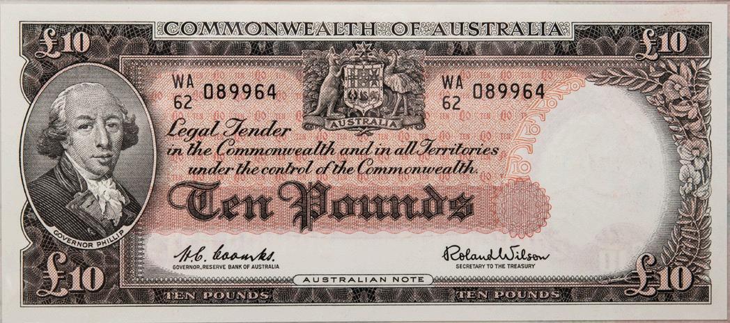 An official Reserve Bank of Australia release, with the notes taken from their archives, each set features the last four predecimal note issues (10/-, £1, £5 & £10) and first four 1966 decimal issues ($1, $2, $10 & $20). The predecimal notes carry LAST PREFIXES, while the decimal notes feature FIRST PREFIXES! Even more astounding, all eight Uncirculated Coombs/Wilson notes are also matched by the last three serial number digits!