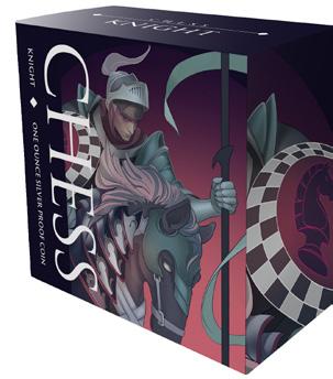 Underpinned by an exquisite Black Proof finish and razor-sharp detail in the design, the second coin in the Chess Series forms a unique precious metal tribute to one of the most iconic pieces on the board – the Knight.