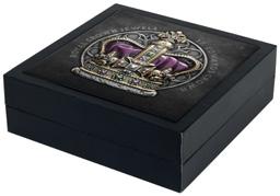 The ultimate symbol of the power of the monarchy, St Edward’s Crown has been used for the Coronation of virtually every English King and Queen since 1661. An inspired tribute, this coin is struck to Ultra High Relief quality from 2oz of 99.9% silver. Underpinned by an Antique finish, and featuring colour elements representing the 444 precious & semiprecious stones in the original crown, this release has one very special feature. Each coin has been struck in a flat-based, freestanding format!