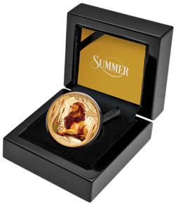 Struck from 99.9% silver and measuring 38.60mm, the flan forms the perfect venue for the portrayal of the King of the Jungle – the lion. Superbly rendered in full-colour, the depiction of the noble lion resting beneath trees to escape the heat is emblematic of Summer. With mintage is a mere 1,000, immediate action is essential.