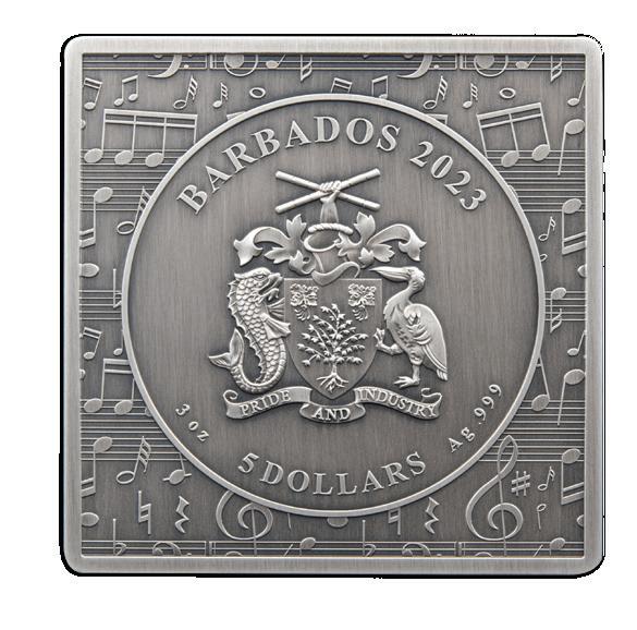 Struck from 3oz of 99.9% pure silver, this official Barbados legal tender coin has a 24-carat goldplated record inlay that actually spins! Exclusive, the mintage has been set at a mere 999 coins - each housed in a case with a Certificate of Authenticity