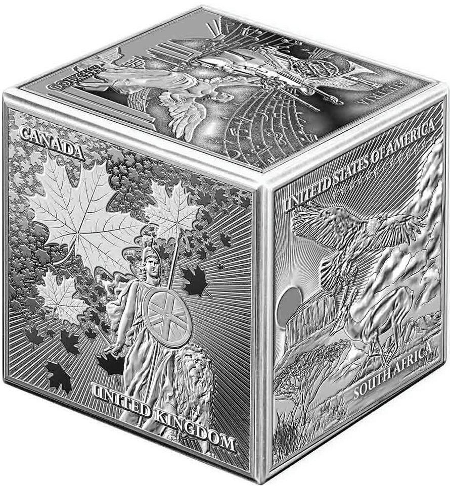 Celebrating the world’s favourite silver coins – the Eagle $1, Maple Leaf $5, Kangaroo $1 and more – this innovative ‘cube’ coin is struck from a KILO of 99.9% silver! Tiny worldwide mintage just 199!