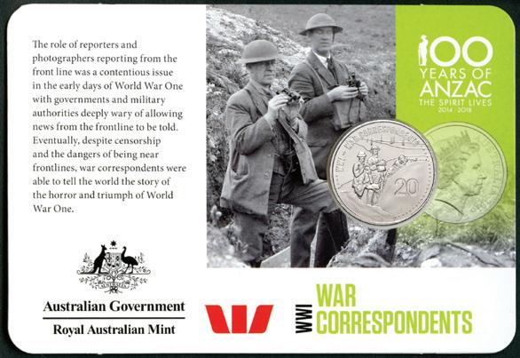 Australia 100 Years of ANZAC 2015 20c War Correspondents Cupro-Nickel Uncirculated Coin